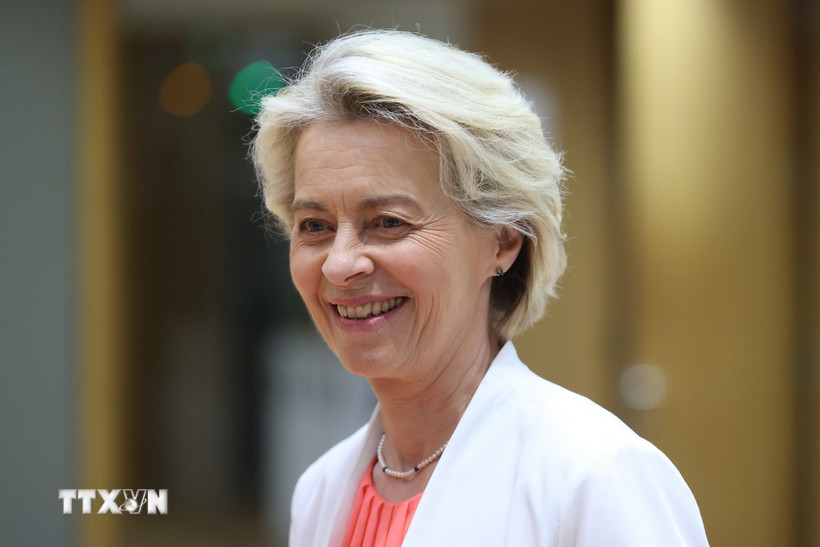 Chủ tịch Ủy ban châu Âu (EC) Ursula von der Leyen tới dự cuộc họp các nhà lãnh đạo châu Âu (EU) ở Brussels, Bỉ ngày 17/6/2024. (Ảnh: THX/TTXVN)