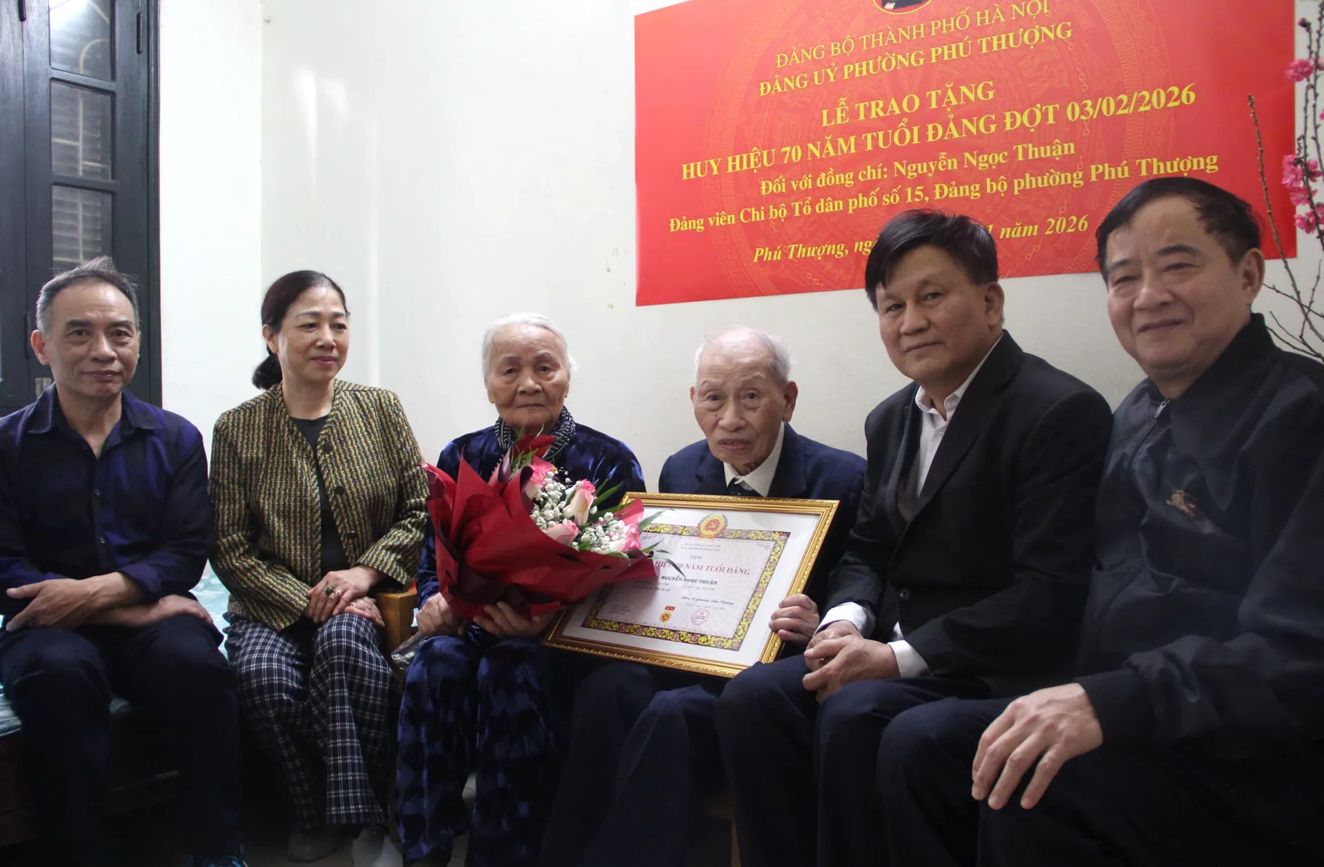 Nhân kỷ niệm 96 năm Ngày thành lập Đảng Cộng sản Việt Nam (3/2/1930-3/2/2026), chiều nay, 29/1, Ủy viên Ban Thường vụ Thành ủy, Chủ tịch Ủy ban MTTQ Việt Nam TP Hà Nội Bùi Huyền Mai thay mặt Ban Thường vụ Thành ủy Hà Nội đã tới nhà riêng trân trọng gắn, trao Huy hiệu 70 năm tuổi Đảng tặng đảng viên tại Phú Thượng.