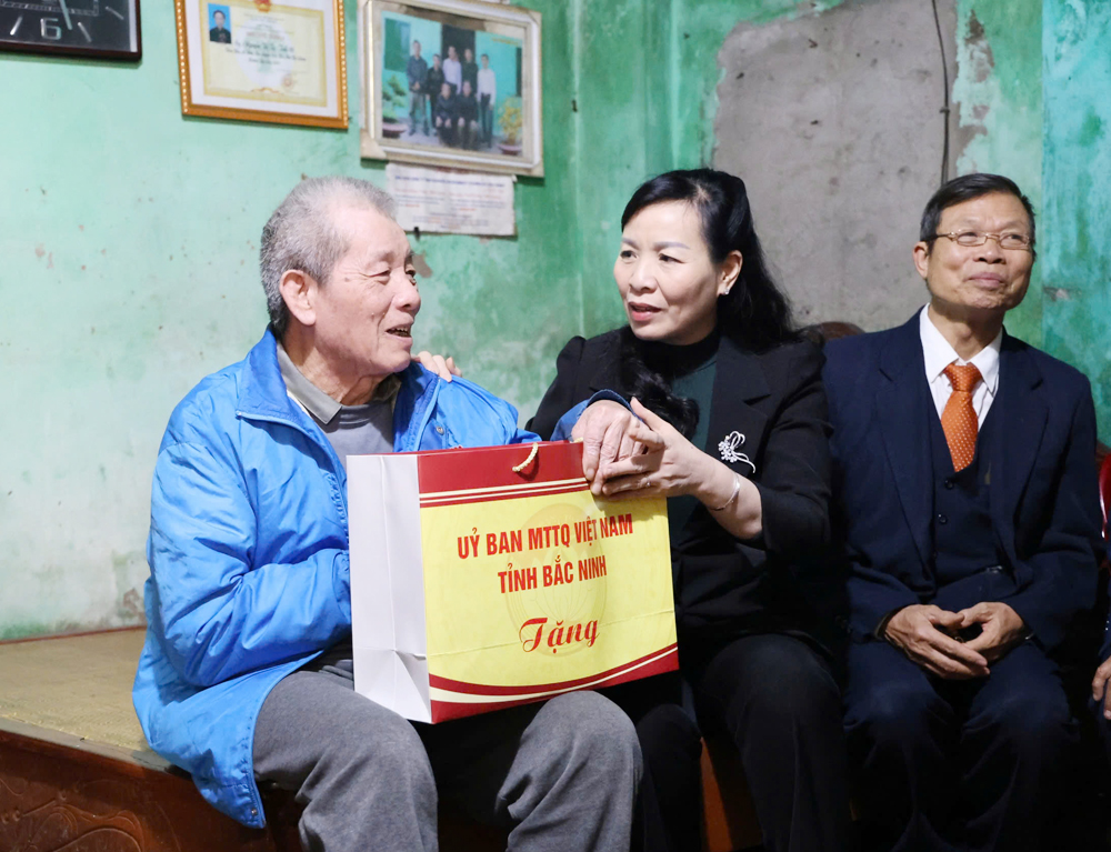 Đồng chí Nguyễn Thị Hà thăm hỏi, trao quà Tết cho ông Nguyễn Đăng Biện.
