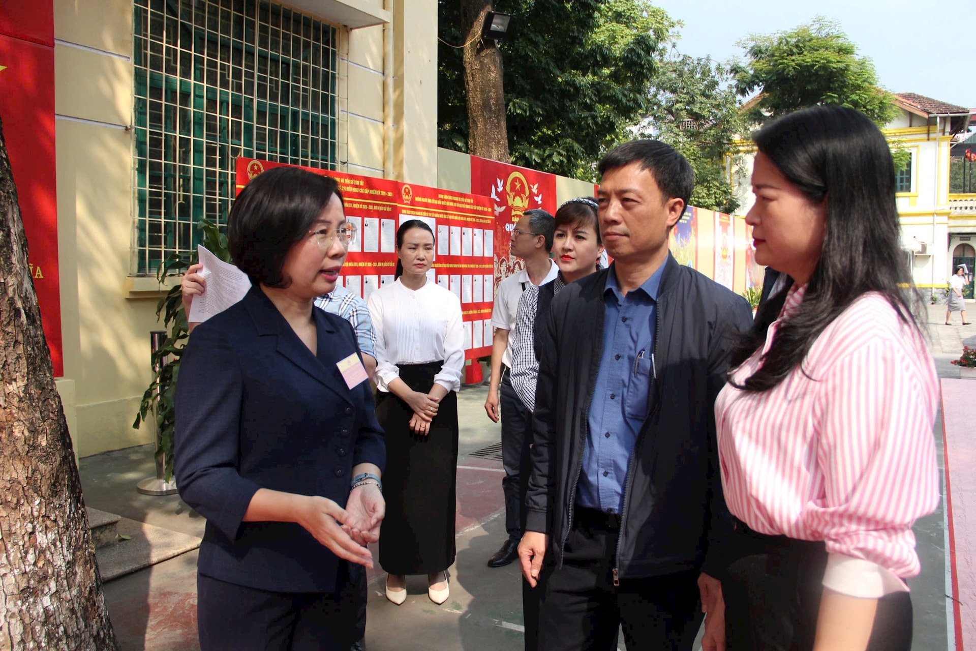 Trước đó, Ủy viên Ban Thường vụ Thành ủy, Chủ tịch Ủy ban MTTQ Việt Nam thành phố Hà Nội Bùi Huyền Mai cùng Đoàn đã đi kiểm tra tại điểm bỏ phiếu: Trường Tiểu học Kim Đồng (phường Giảng Võ), Trường THPT Phan Đình Phùng (phường Ba Đình). Tại các điểm bỏ phiếu, đồng chí Bùi Huyền Mai yêu cầu các điểm tiếp tục rà soát, kiểm tra nghiêm túc, hoàn thiện mọi mặt để bảo đảm triển khai cuộc bầu cử đúng tiến độ, đúng thẩm quyền.