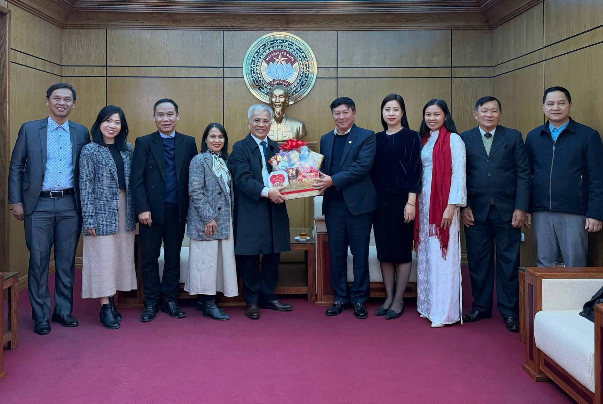 Đại diện Hội Thánh tin lành lời sự sống chúc mừng năm mới Ủy ban MTTQ Việt Nam thành phố Hà Nội. Ảnh: PV