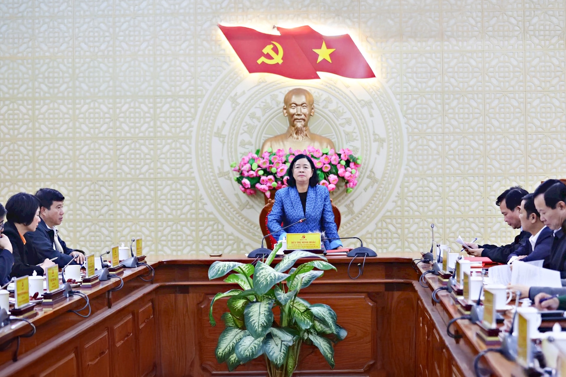 Đồng chí Bùi Thị Minh Hoài, Ủy viên Bộ Chính trị, Bí thư Trung ương Đảng, Chủ tịch Ủy ban Trung ương MTTQ Việt Nam chủ trì buổi làm việc với lãnh đạo tỉnh Lâm Đồng về công tác khắc phục mưa lũ