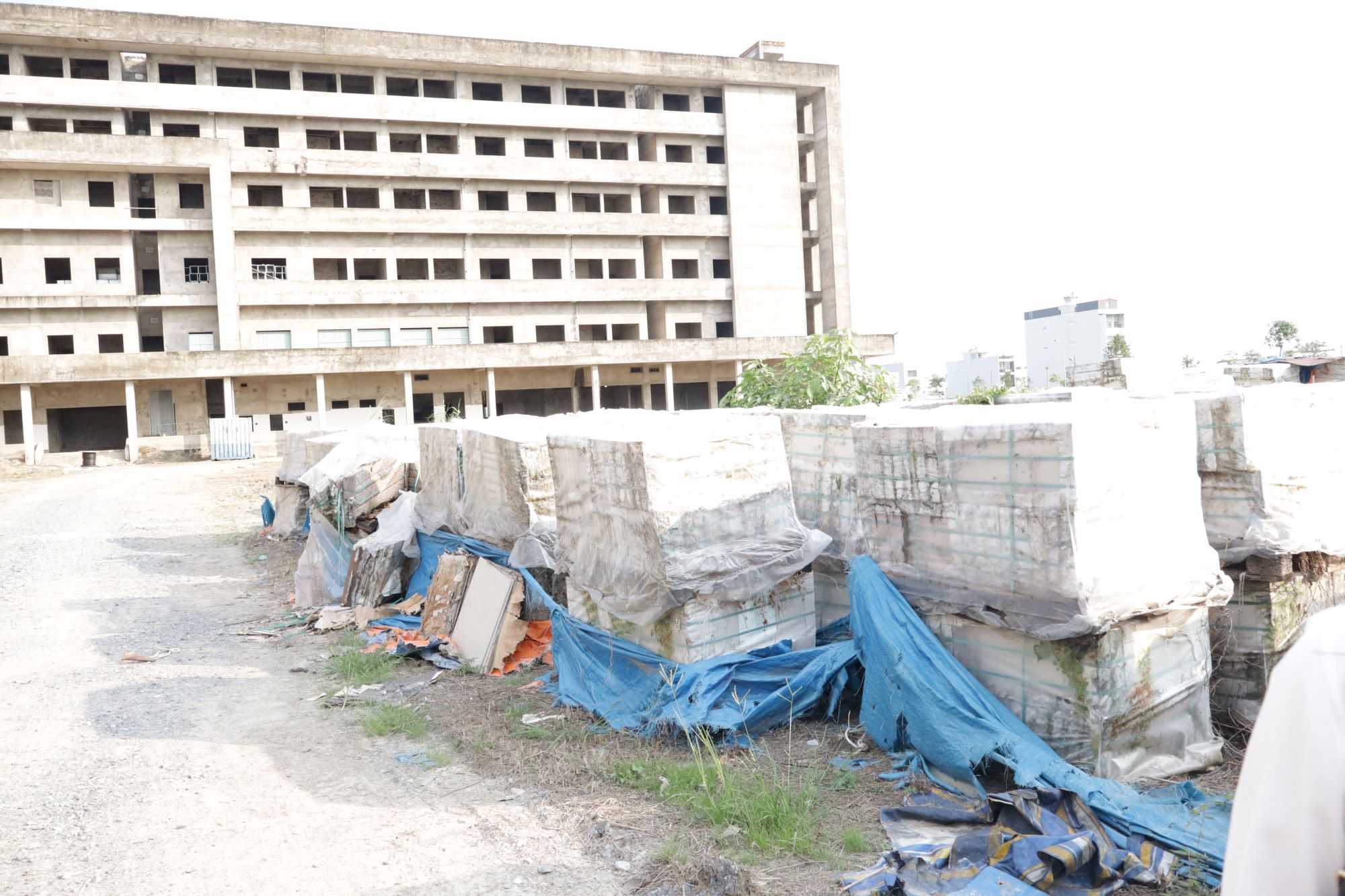 Vật tư tập kết rất lâu tại công trường. Ảnh: NHẪN NAM
