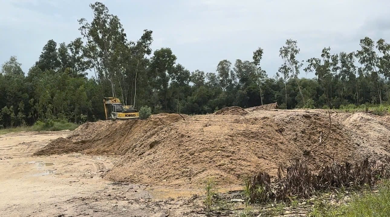 Nhiều bãi tập kết cát nằm sát bờ sông, với đầy đủ thiết bị như máy múc, sàng lọc cát, cho thấy mức độ quy mô như một mỏ cát được cấp phép chính thức từ cơ quan chức năng.