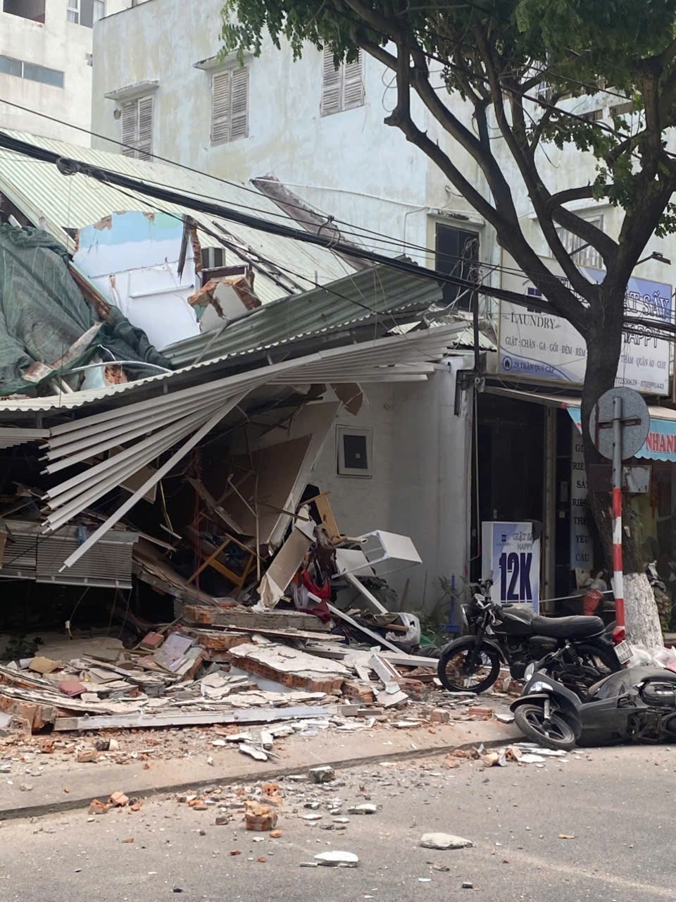 Khoảng 15h30 ngày 19/4, chị Lê Văn (sinh năm 1995), chủ tiệm bánh trên đường Trần Quý Cáp (phường Hải Châu, TP Đà Nẵng) và chồng bất ngờ nghe thấy tiếng "rầm" lớn từ phía sau, tường rung lắc.