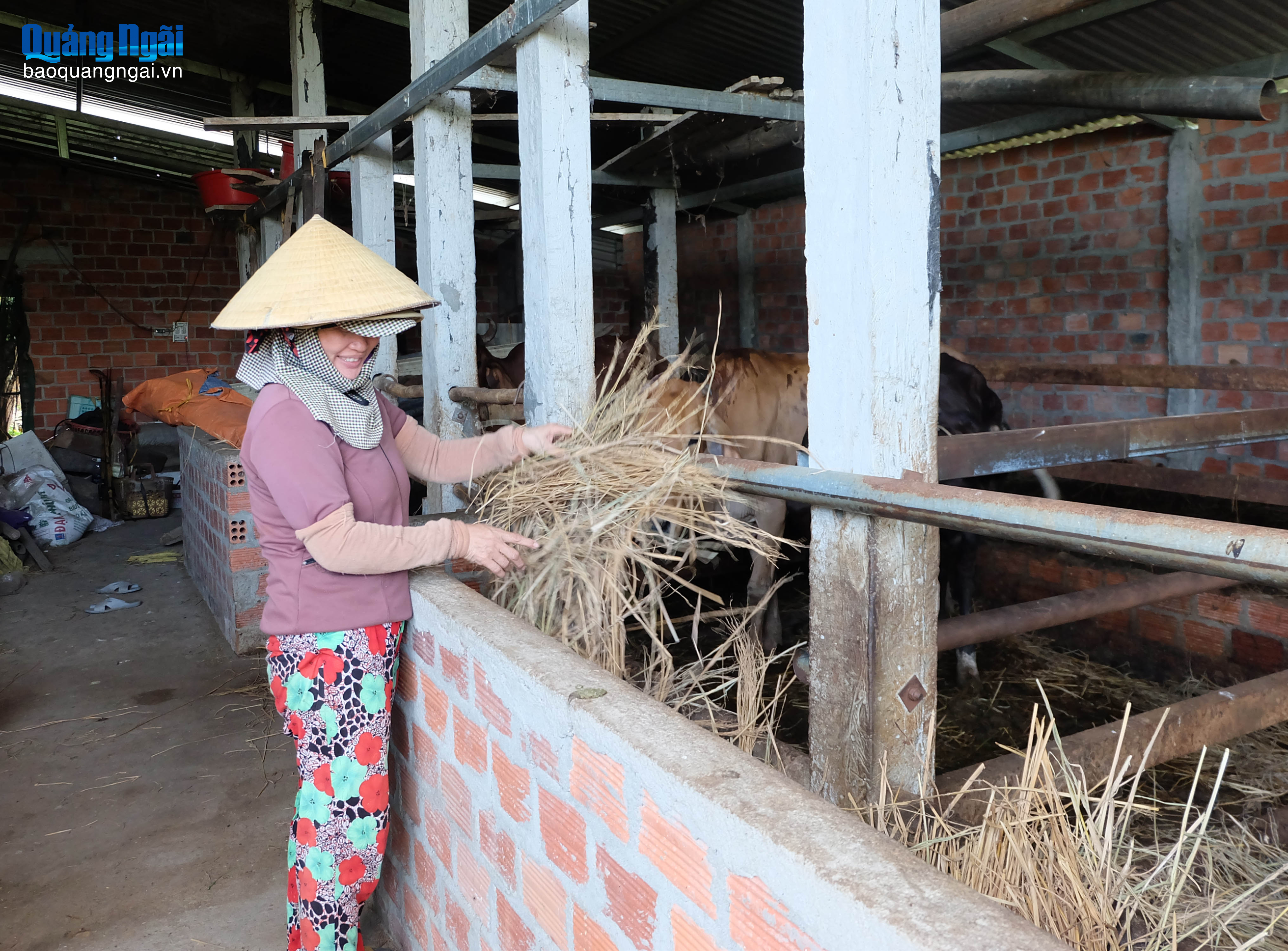 Nhà có đất vườn rộng, bà Hương học hỏi kinh nghiệm từ các mô hình kinh tế trong xã. Bà còn tìm hiểu qua sách, báo để thực hiện mô hình trồng cỏ chăn nuôi bò, nuôi heo sinh sản.