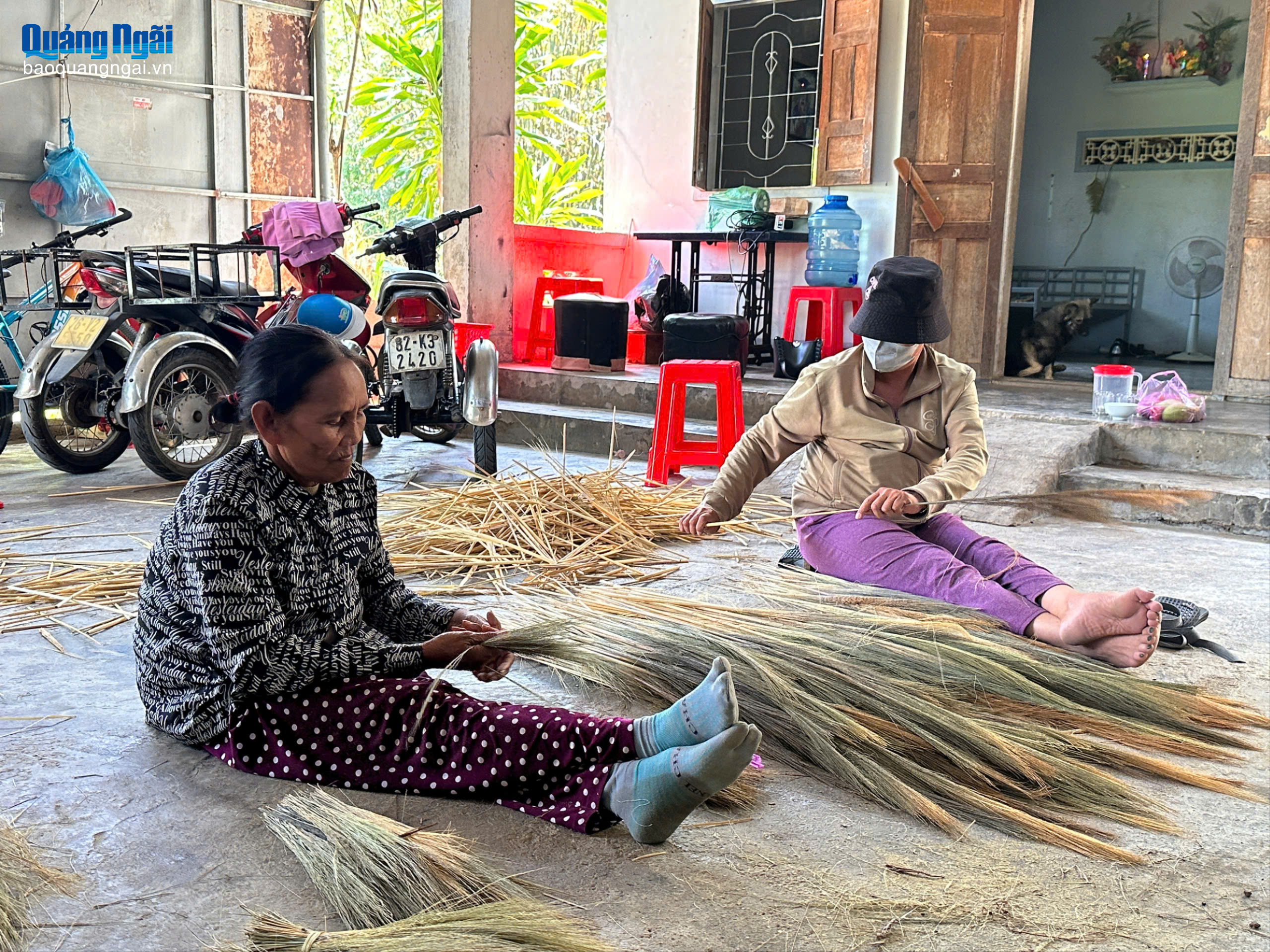 Tổ hợp tác làm chổi đót của bà Phan Thị Hồng Hương tạo việc làm cho nhiều lao động khuyết tật. ẢNH: V.TUYỀN