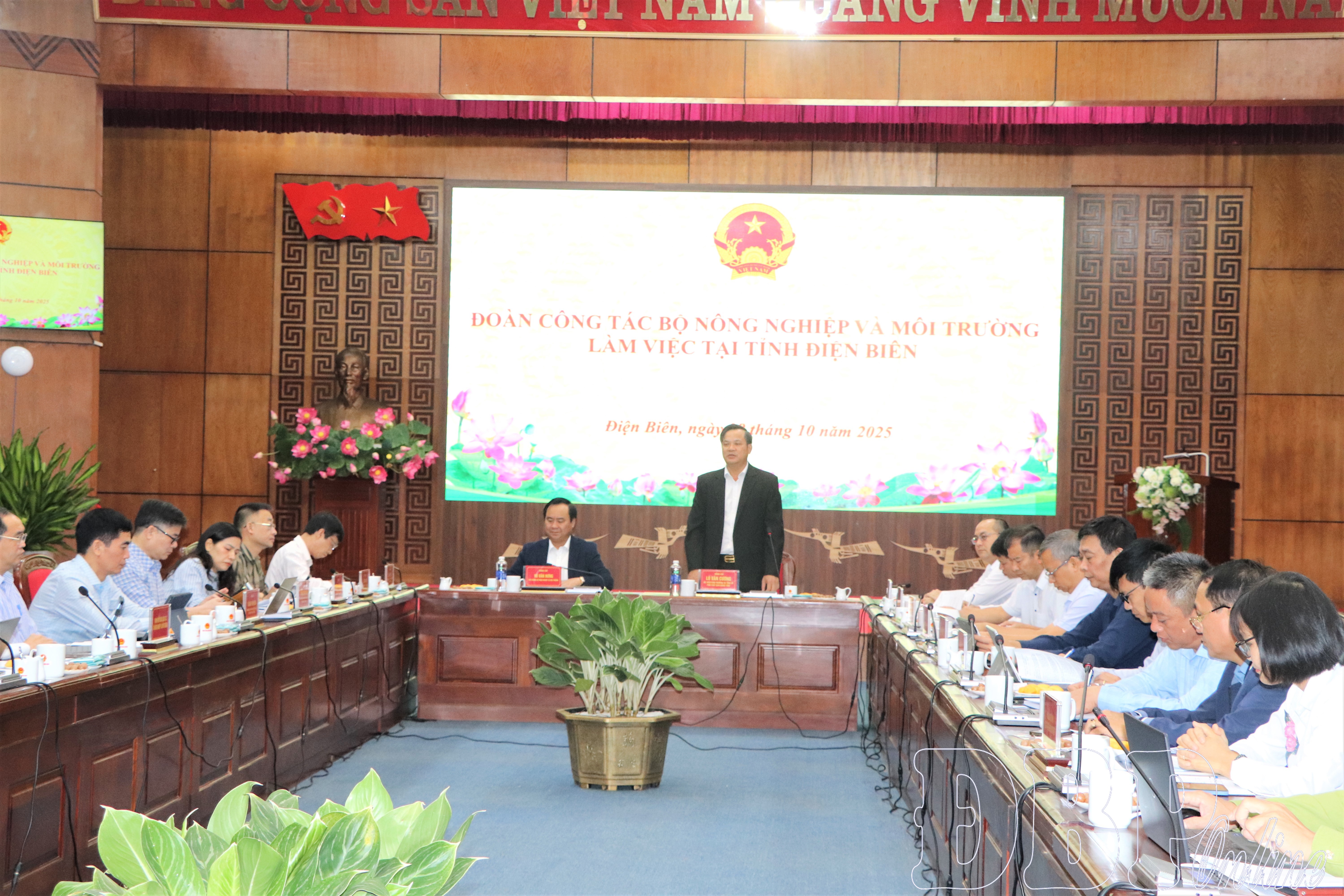 Thứ trưởng Bộ Nông nghiệp và Môi trường Võ Văn Hưng ghi nhận và đánh giá cao nỗ lực, quyết tâm của tỉnh Điện Biên trong việc tập trung nguồn lực để khắc phục hậu quả thiên tai, sắp xếp ổn định dân cư. Đặc biệt, tỉnh đã chú trọng dành quỹ đất phát triển kinh tế hàng hóa, tạo điều kiện để người dân tham gia vào chuỗi sản xuất nông nghiệp, góp phần nâng cao thu nhập.