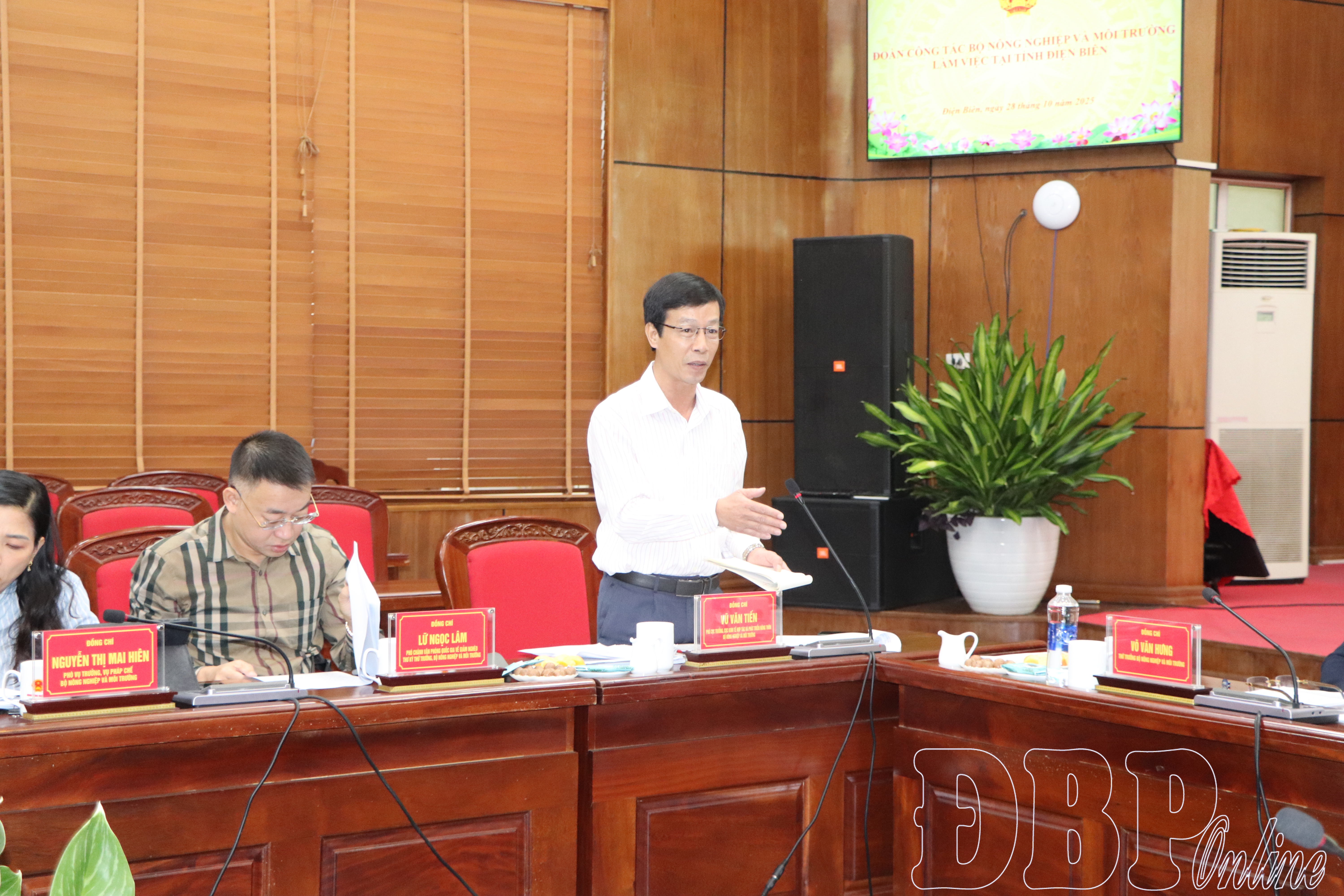 Tại buổi làm việc, Sở Nông nghiệp và Môi trường đã báo cáo kết quả thực hiện bố trí dân cư vùng thiên tai cấp bách, điều chỉnh Đề án 666 và triển khai chương trình MTQG xây dựng nông thôn mới, giảm nghèo bền vững giai đoạn 2021 - 2025 trên địa bàn tỉnh Điện Biên.