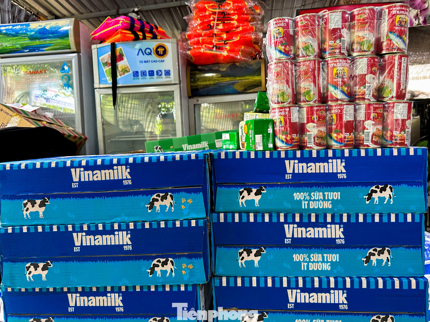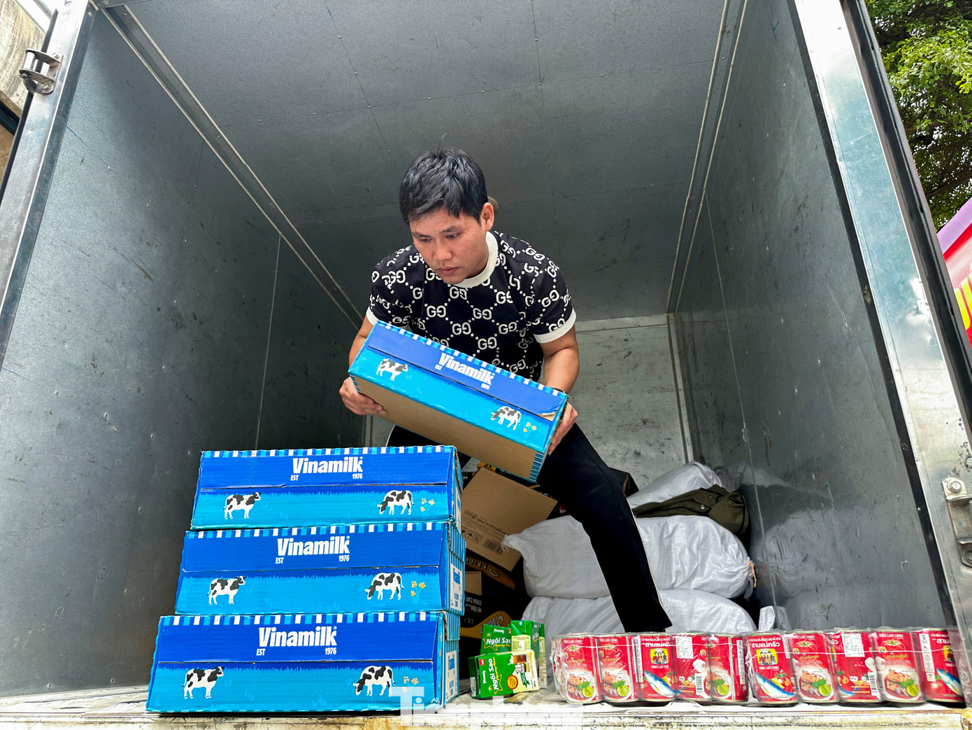 Đợt này, Đội SOS Đà Nẵng nhận được 800 thùng mì, hơn 100 thùng sữa, hơn 1 tấn gạo cùng hàng trăm lốc nước lọc và nhiều nhu yếu phẩm khác…