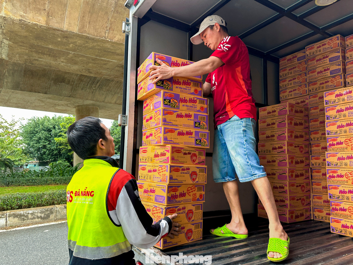 Tại điểm tập kết trên đường Tôn Đức Thắng, từ sáng sớm, hàng chục người dân đã có mặt hỗ trợ khuân vác, đóng gói và phân loại hàng cứu trợ. Những chuyến xe nối tiếp nhau, chất đầy gạo, nước sạch, mì tôm, áo ấm… hướng về vùng ngập nặng tại Phú Yên.