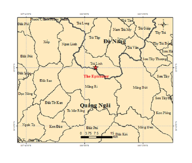 Theo đó, 5 giờ 16 phút 56 giây, một trận động đất có độ lớn M = 3.0 xảy ra tại vị trí có tọa độ 14.991° vĩ Bắc – 108.120° kinh Đông, độ sâu chấn tiêu khoảng 8.1 km.