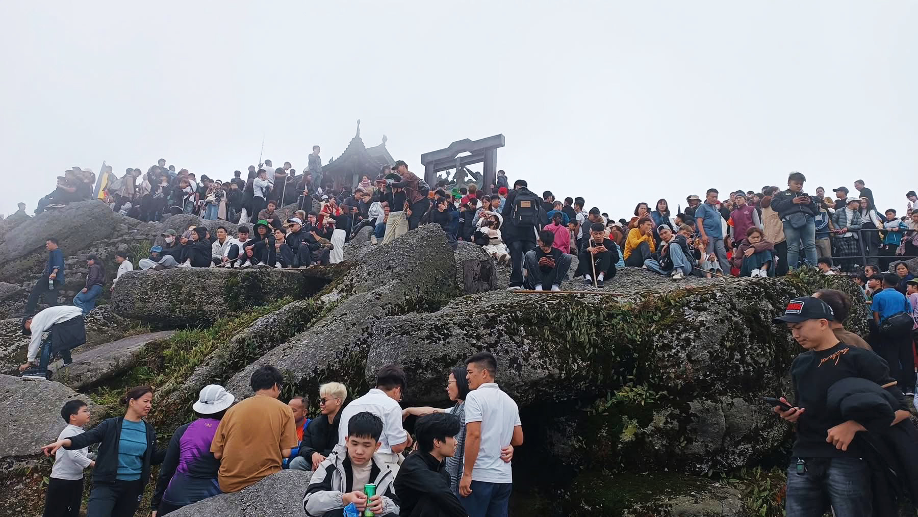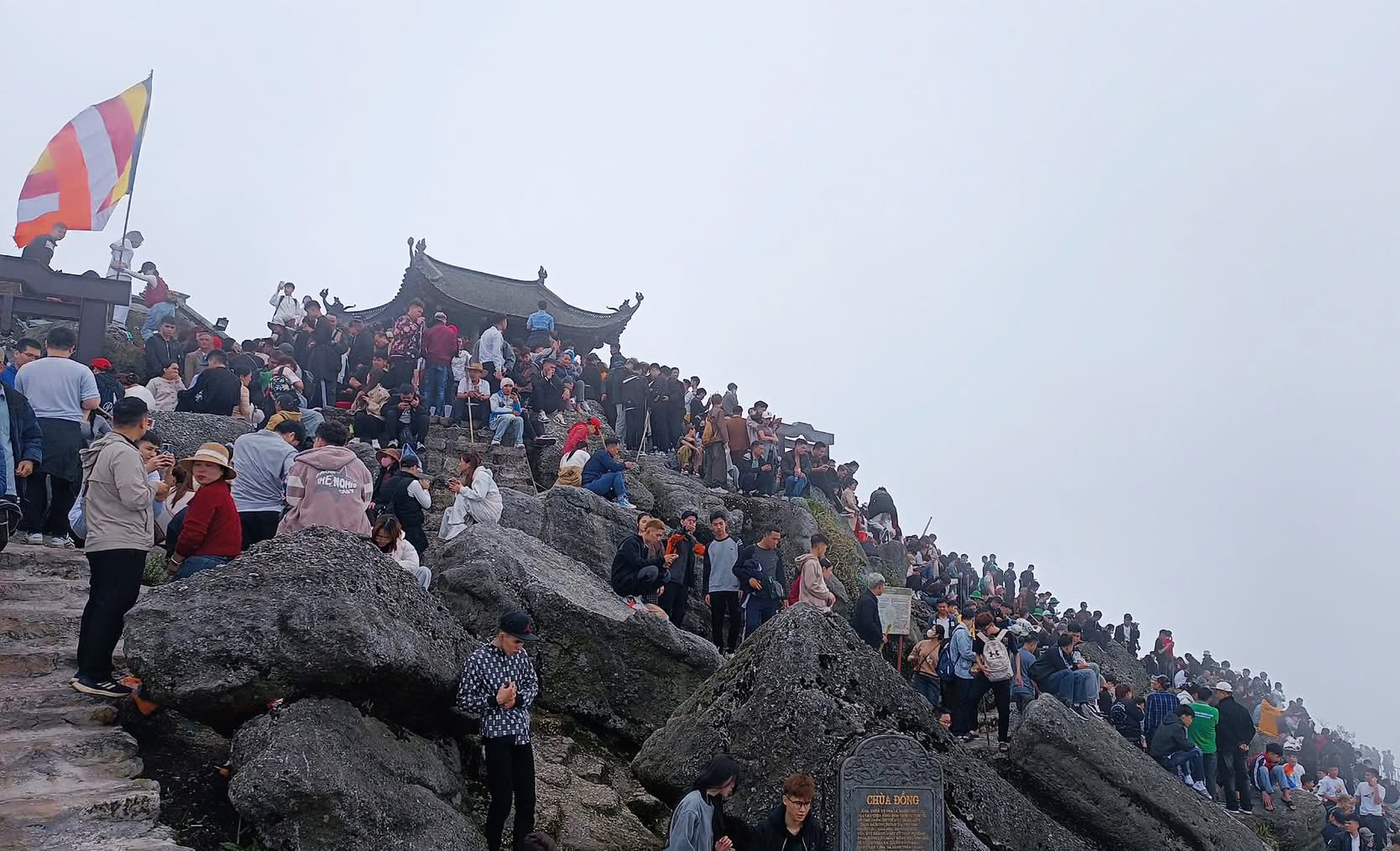 Người dân phải nhích từng chút một để có thể lên được đến chùa Đồng tọa lạc ở đỉnh cao nhất dãy Yên Tử (cao 1.068m).
