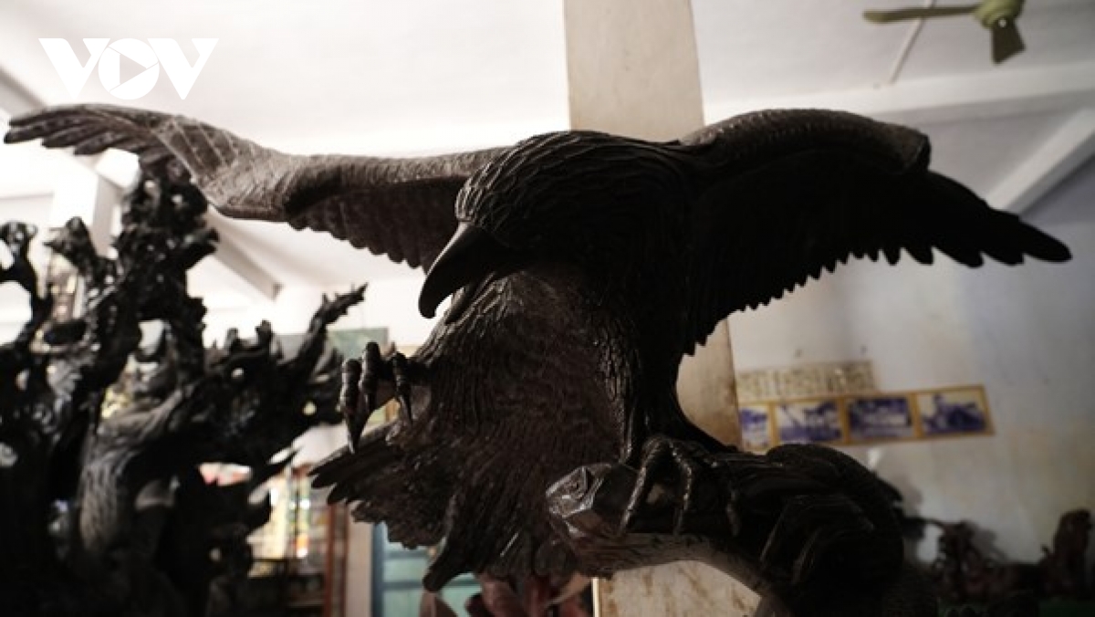 Tác phẩm “Đại bàng xoải cánh” được các sư sãi miệt mài điêu khắc trong suốt 3 tháng.