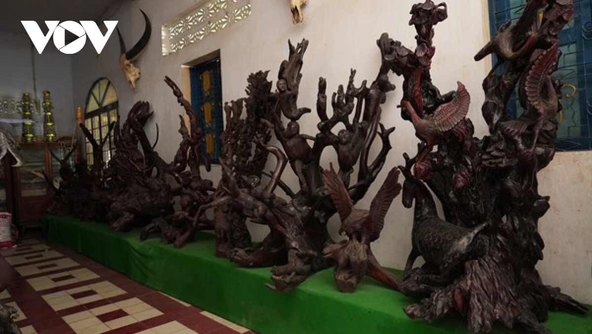 Mỗi ngày, tại chùa Hang có hơn 10 vị sư sãi miệt mài nghiên cứu, chế tác những tác phẩm điêu khắc từ những gốc cây. Qua bàn tay khéo léo cùng sự sáng tạo, các khúc gỗ vô tri được “hồi sinh”, trở thành những tác phẩm nghệ thuật tinh xảo mang dáng dấp Long, Lân, Quy, Phụng, các loài chim thú… đậm nét văn hóa Khmer Nam Bộ.
