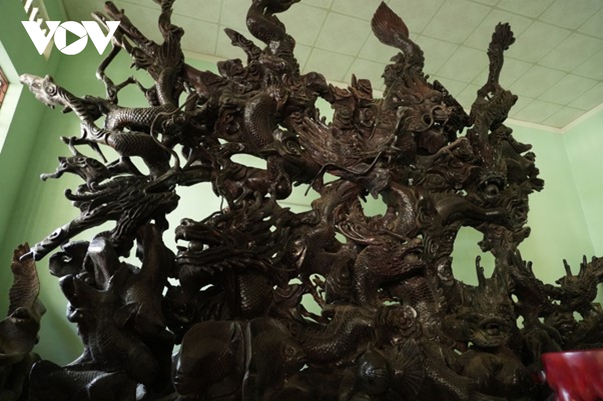 Nhắc đến tác phẩm “Nhất Long Giang” vừa được xác lập kỷ lục châu Á, ông Sóc không giấu được niềm tự hào. Ông xem đây là tác phẩm để đời của mình. Để hoàn thiện tác phẩm, ông cùng bốn vị sư lành nghề đã miệt mài chế tác suốt gần hai năm trên một thân cây dầu cổ thụ hơn 300 năm tuổi, nặng khoảng 8,7 tấn.