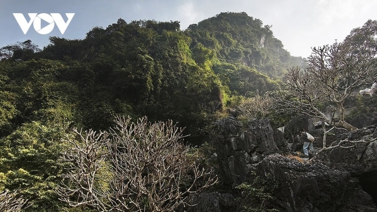 Từ chùa Bảo Đài, du khách bắt đầu cung đường trekking dài khoảng 1km để lên động Tuyết Sơn. Đây là một trong những đoạn đường đẹp nhất tại Hương Sơn khi đi xuyên qua lõi rừng đặc dụng. Dọc lối mòn sát vách núi, những thảm lan rừng tự nhiên bám chặt vào đá, tạo nên một hệ sinh thái xanh mát và sinh động.