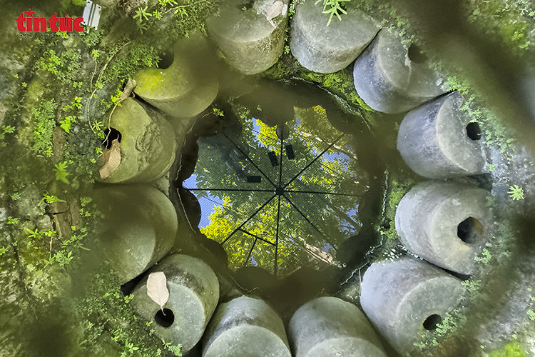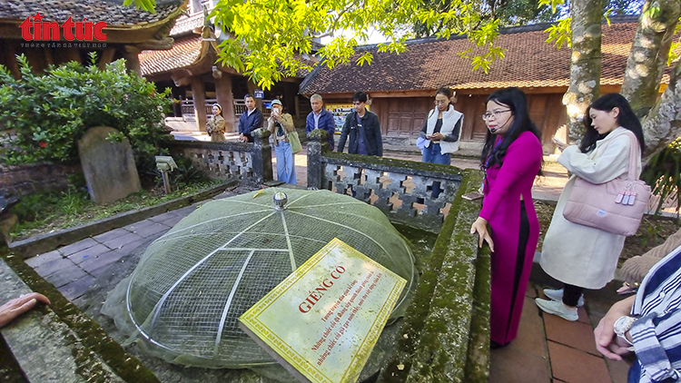 Du khách tham quan khu giếng cổ trong khuôn viên chùa Keo – một dấu tích kiến trúc gắn với đời sống sinh hoạt xưa.