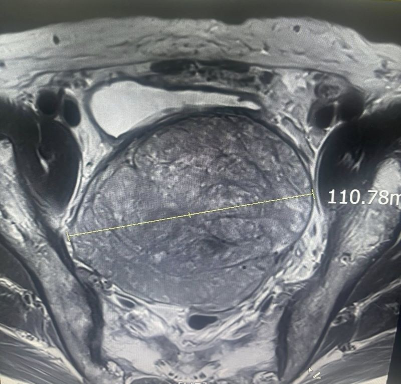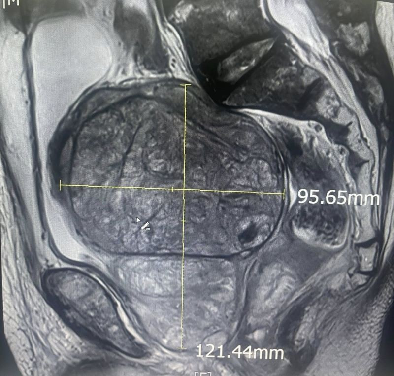 Trước phẫu thuật, bệnh nhân nhập viện trong tình trạng tiểu khó kéo dài, bí tiểu tái diễn nhiều lần, kèm theo rối loạn tiêu hóa do khối u tuyến tiền liệt khổng lồ chèn ép trực tràng.