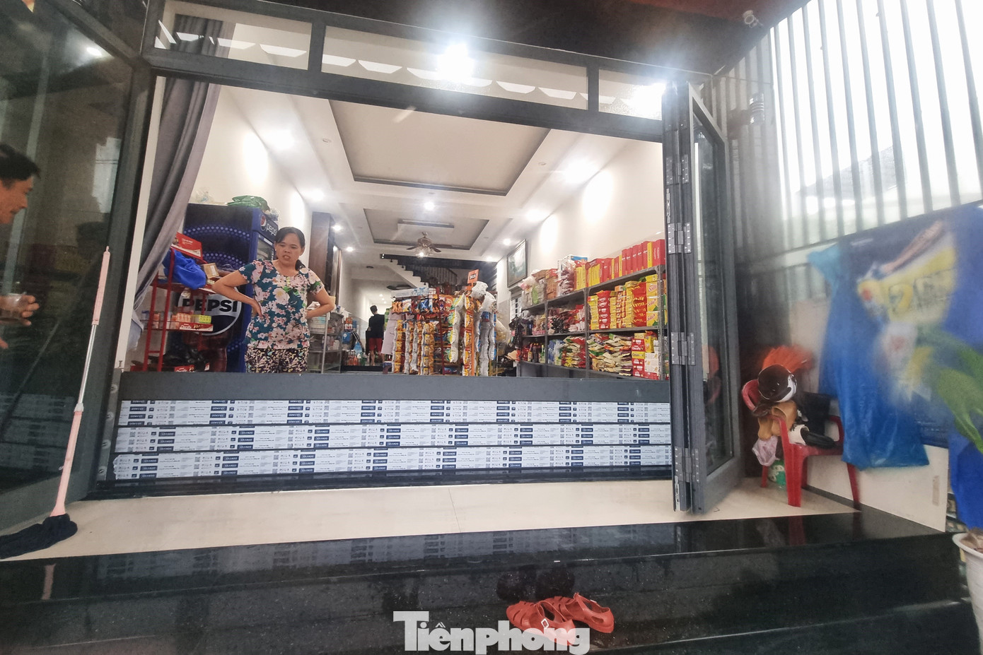 Một hộ dân bán hàng tạp hóa nhà xây trên khu đất cao đã dựng vách chắn nước từ sớm vì sợ ngập.