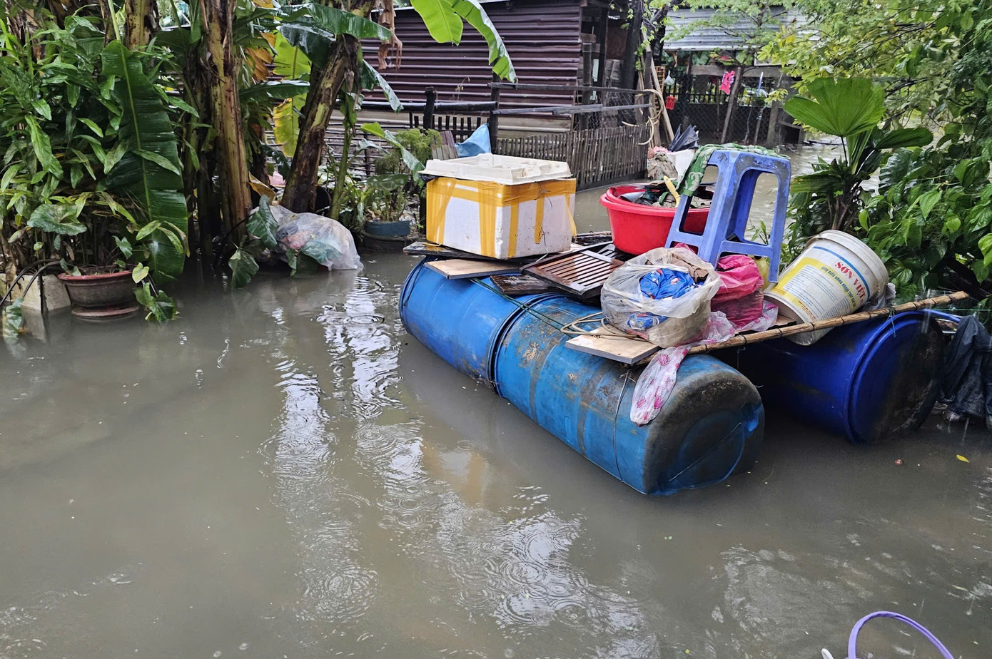 "Nước tràn vào nhà lúc 5 giờ sáng, sau đó rút ra. Tới tầm 9h thì lại dâng ngập nhà lại", anh Lê Thịnh (tổ 89, phường Hòa Xuân) ngao ngán.