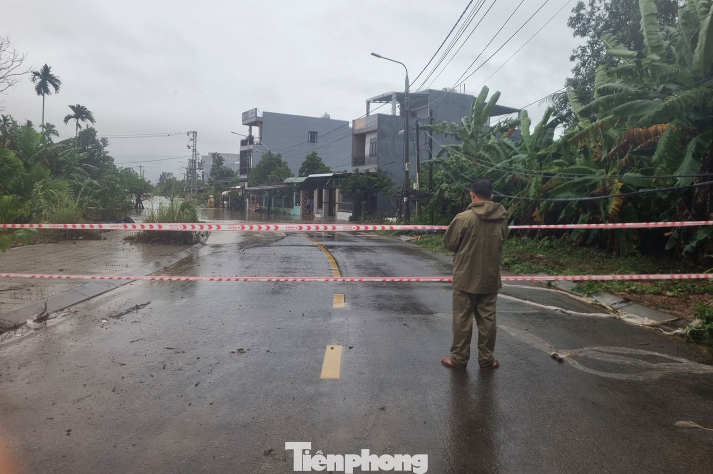 Lực lượng chức năng đã căng dây ngăn người và phương tiện qua lại khu vực này để đảm bảo an toàn.