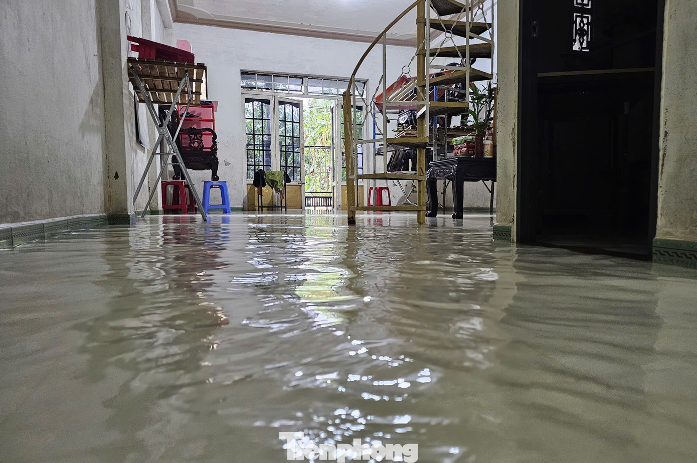 Một nhà dân bị nước tấn công, ngập nặng trong đêm. Đến 7h sáng nay, trời ngớt mưa nên nước rút bớt.