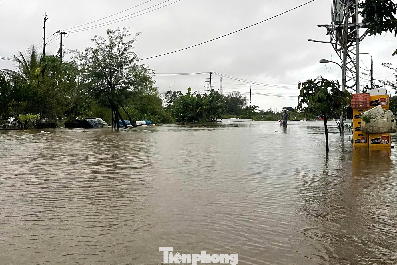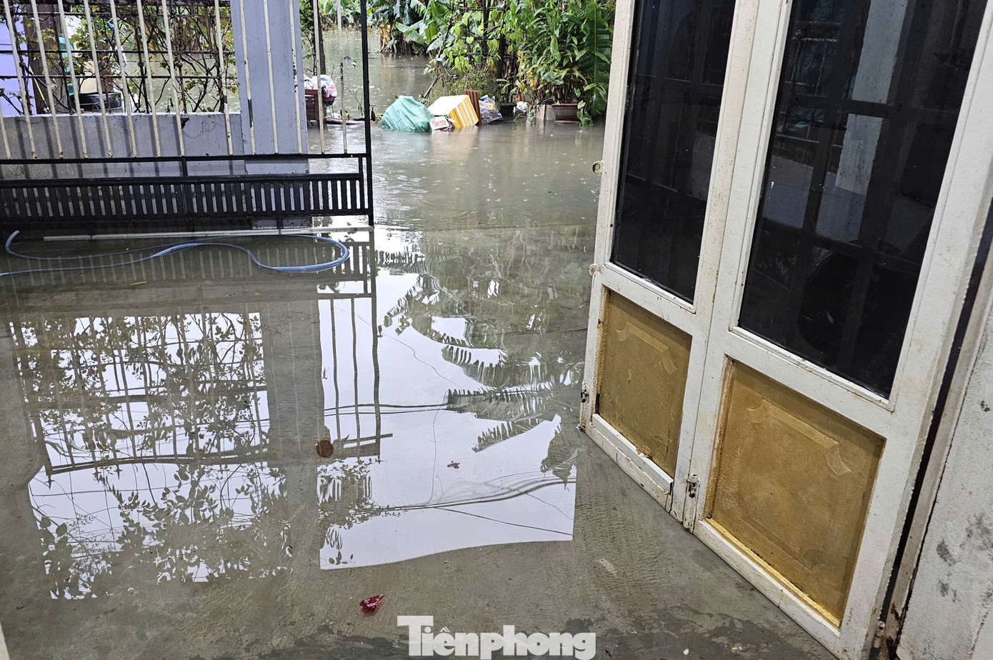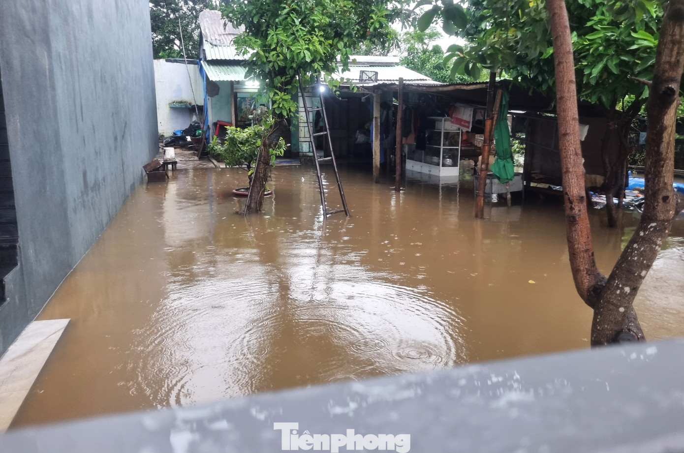 Nước sông tràn lên đường bủa vây nhiều khu dân cư xã Hòa Vang. Đây cũng là khu vực ngập nặng trong đợt mưa lũ cuối tháng 10. Hàng loạt hộ dân vừa mới đẩy bùn non, dọn dẹp nhà chưa kịp ổn định lại đối mặt với nước lũ.