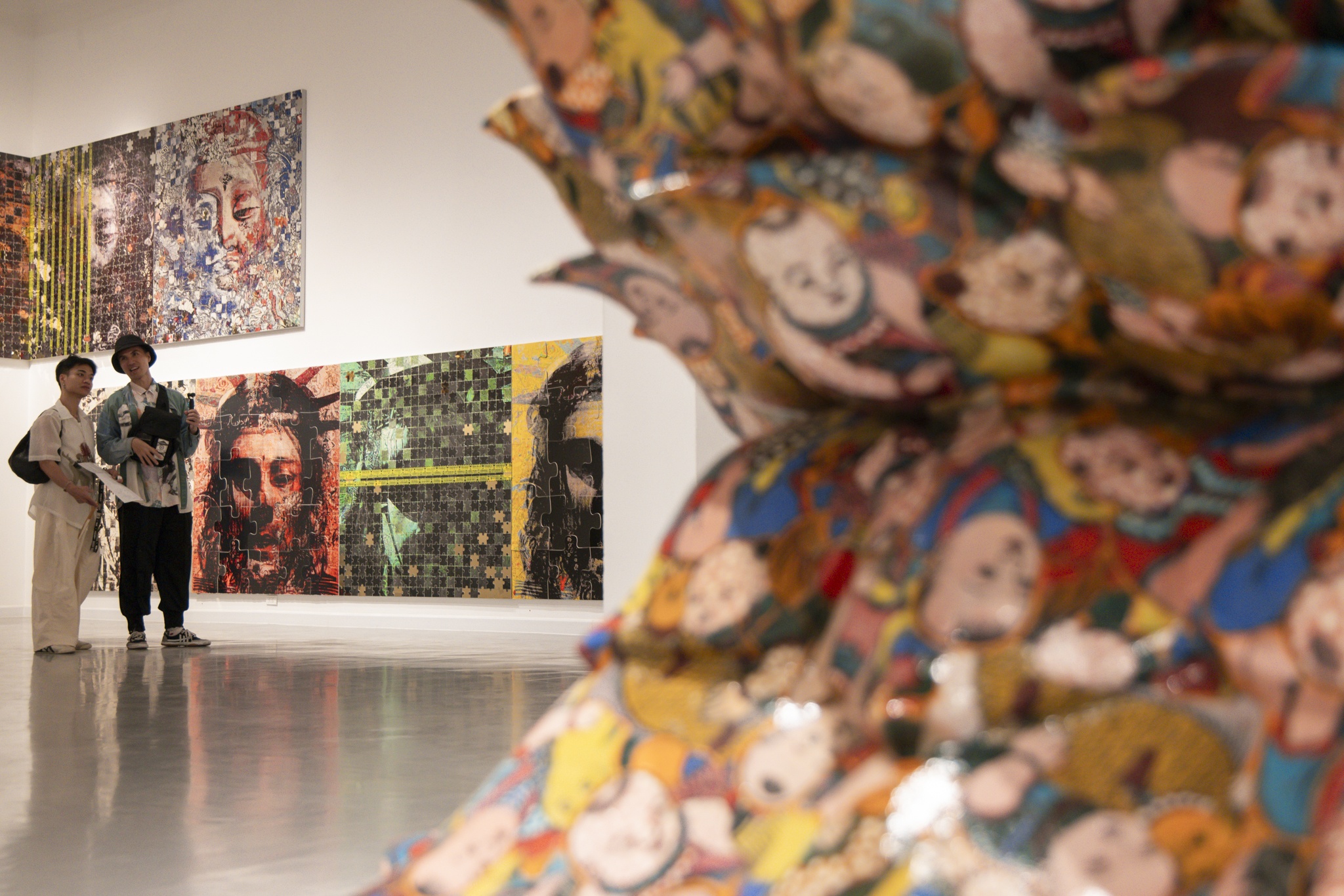 Chúa, Phật, và Trò Chơi Ghép Hình là triển lãm đầu tiên kết hợp các tác phẩm đa bản trên giấy của nghệ sĩ với một số bức tranh cắt dán (collage) - nguồn gốc của những tác phẩm đó.