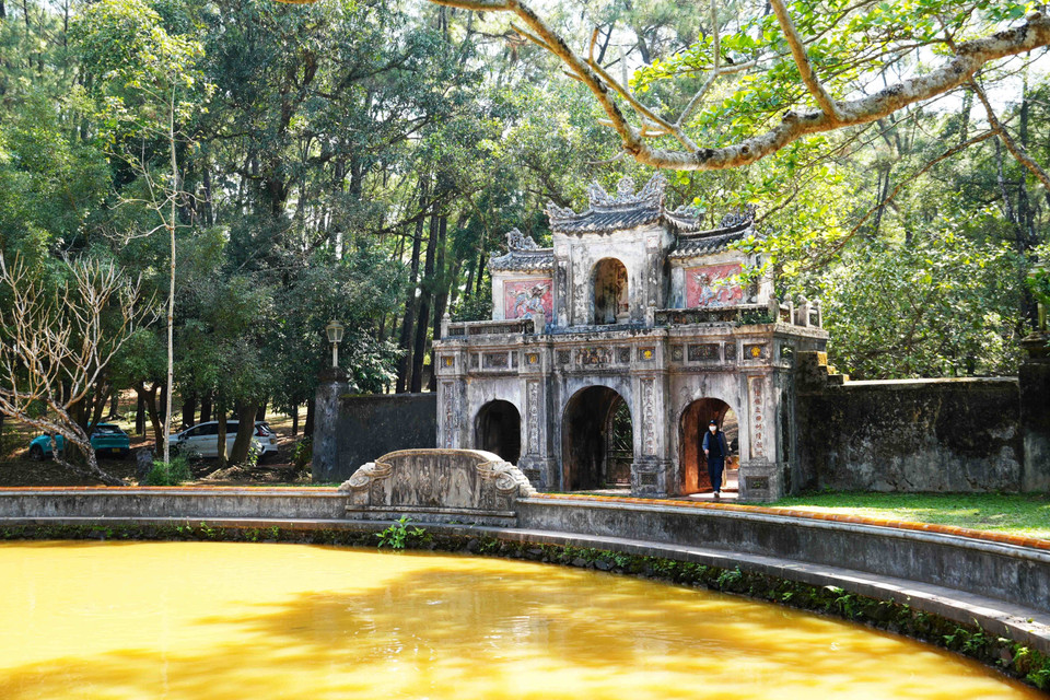 Hồ bán nguyệt ngay sau cổng chính của chùa Từ Hiếu, phường Thủy Xuân, thành phố Huế. (Ảnh: Nguyên Lý/TTXVN)