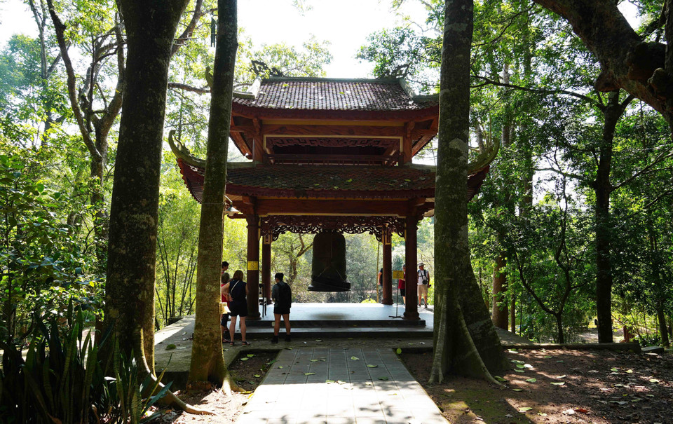 Du khách quốc tế tham quan Tháp Chuông của chùa Từ Hiếu, phường Thủy Xuân, thành phố Huế. (Ảnh: Nguyên Lý/TTXVN)