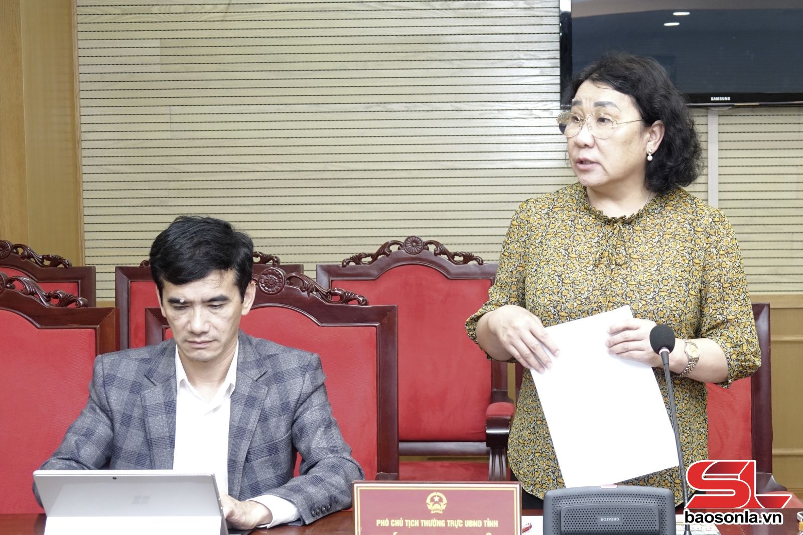 Đồng chí Tráng Thị Xuân, Phó Chủ tịch thường trực UBND tỉnh phát biểu tại cuộc họp.
