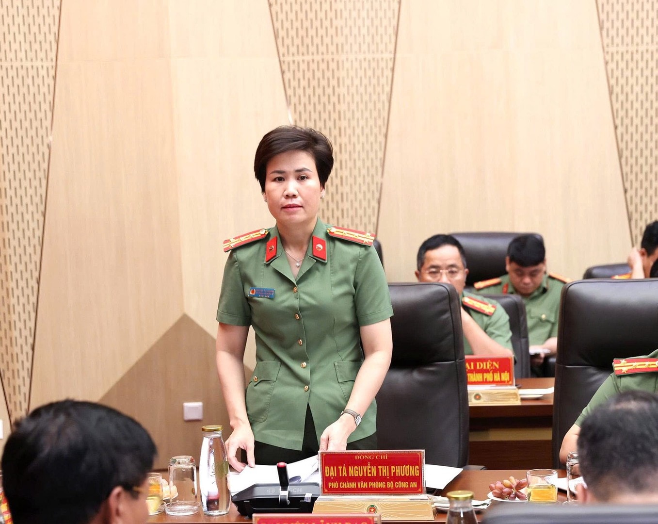 Phó Chánh Văn phòng Bộ Công an, Đại tá Nguyễn Thị Phương báo cáo tóm tắt kiểm điểm, đánh giá công tác bảo đảm an ninh, trật tự, y tế Lễ mở ký.