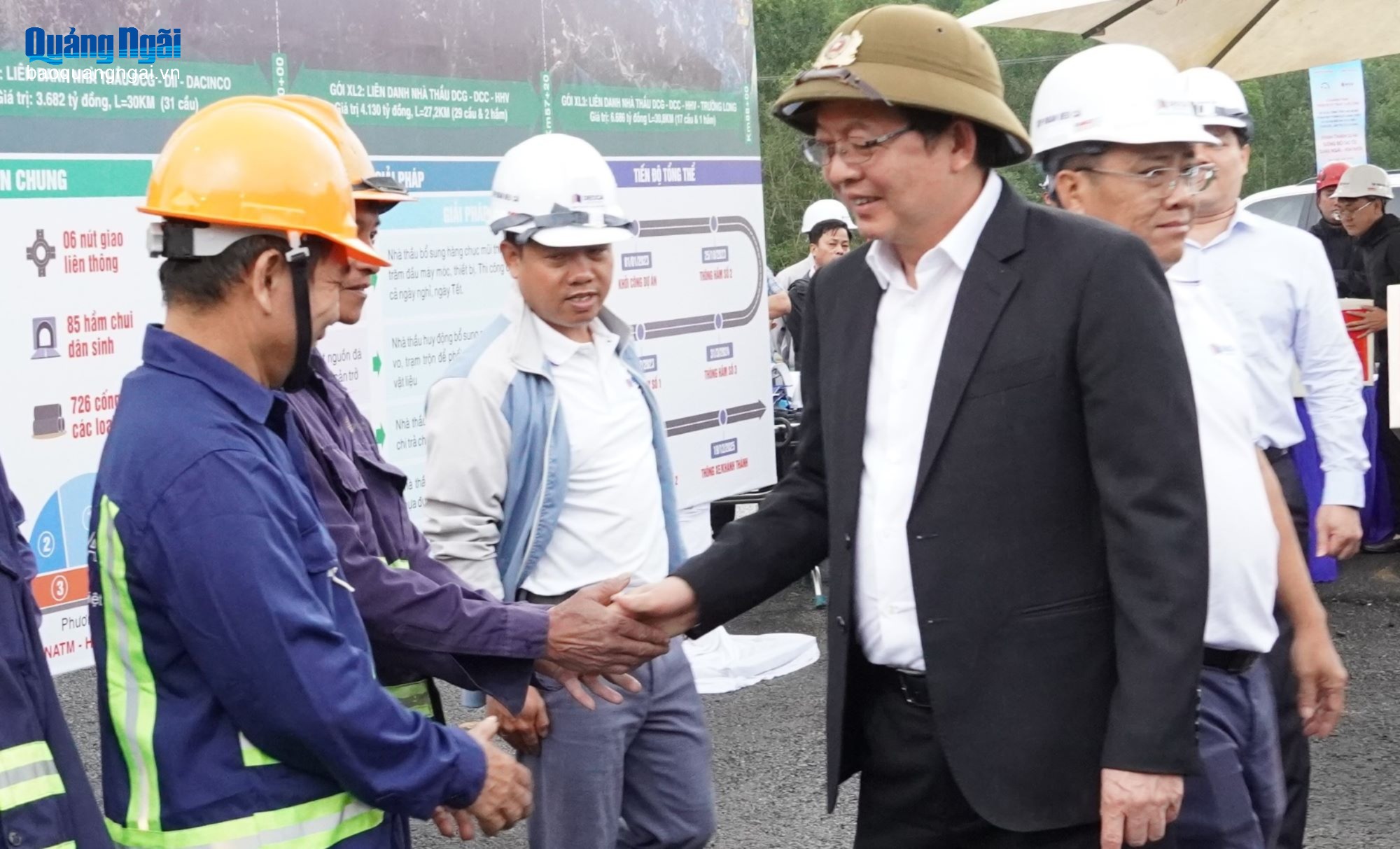 Chiều 18/12, Phó Thủ tướng Chính phủ Hồ Quốc Dũng đến thăm và kiểm tra công tác chuẩn bị tổ chức Lễ khánh thành cao tốc Bắc - Nam phía đông, đoạn Quảng Ngãi - Hoài Nhơn (cao tốc Quảng Ngãi - Hoài Nhơn) tại Hầm số 3, xã Khánh Cường.