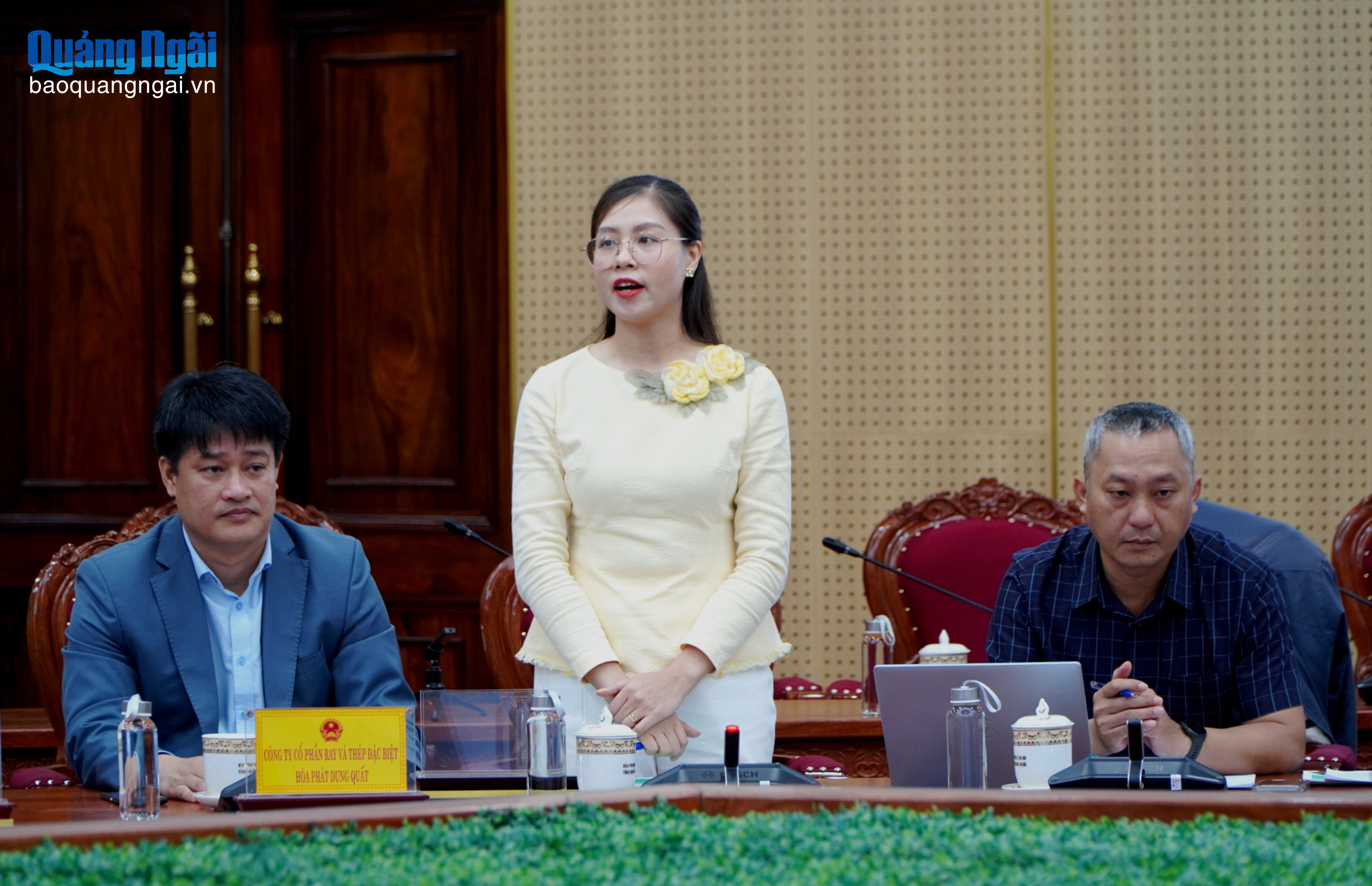 Đại diện Công ty CP Ray và Thép đặc biệt Hòa Phát Dung Quất báo cáo công tác chuẩn bị khởi công dự án Sản xuất ray đường sắt và thép đặc biệt Hòa Phát Dung Quất.