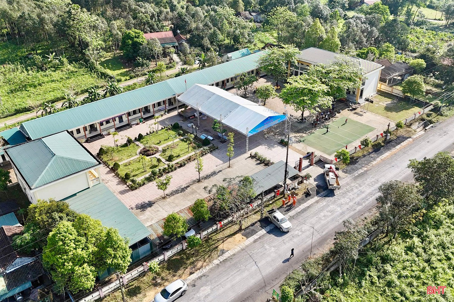 Trường Phổ thông nội trú liên cấp TH&THCS Hương Xuân có diện tích gần 5 ha.
