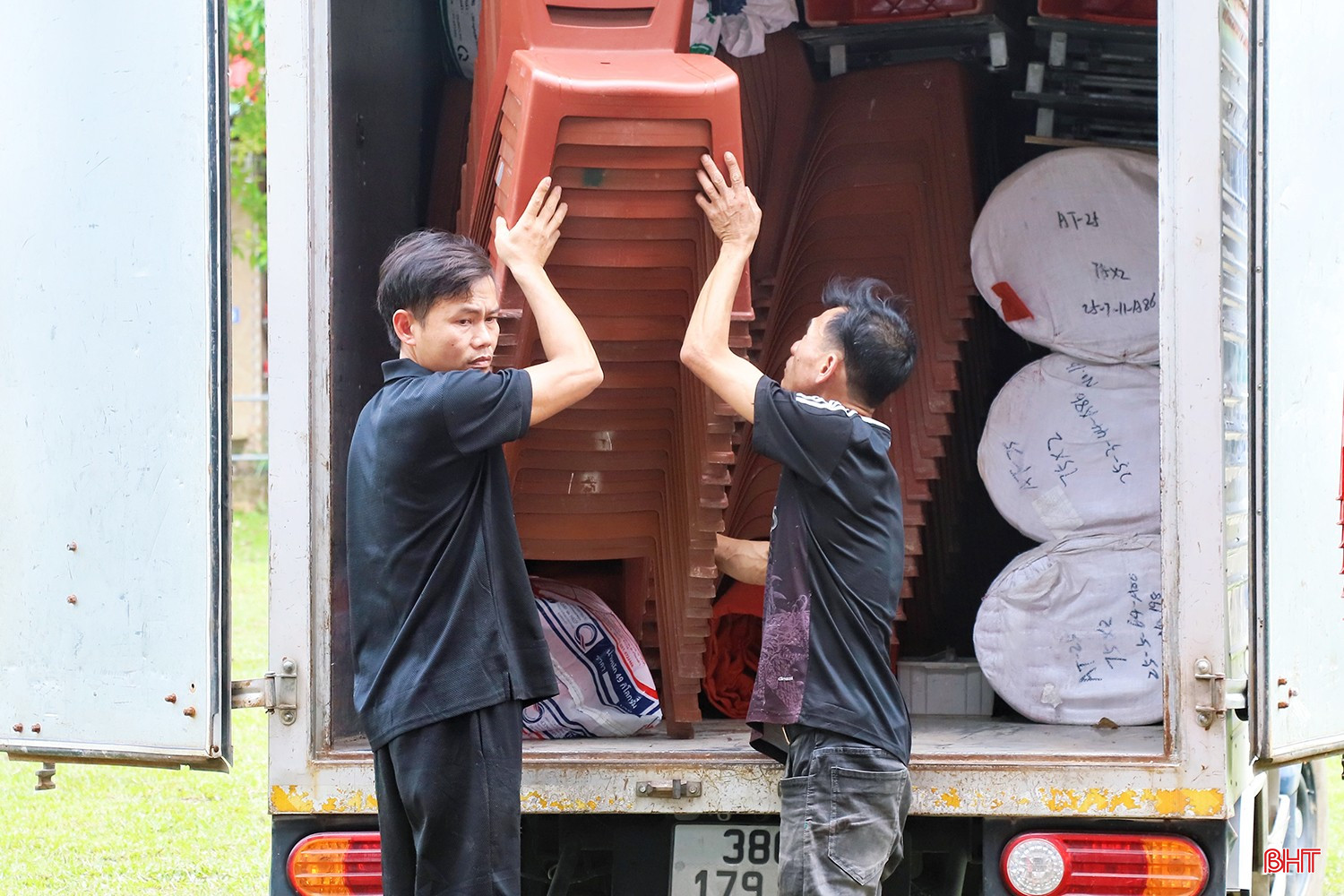 Các đơn vị tập trung lắp đặt hệ thống sân khấu, chuẩn bị bàn ghế... đón tiếp đại biểu về dự lễ khởi công.