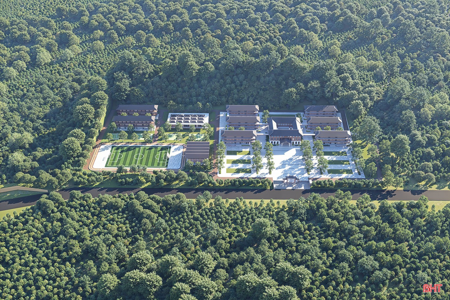 Phối cảnh 3D Trường Phổ thông nội trú liên cấp TH&THCS Sơn Kim 2 (xã Sơn Kim 2).