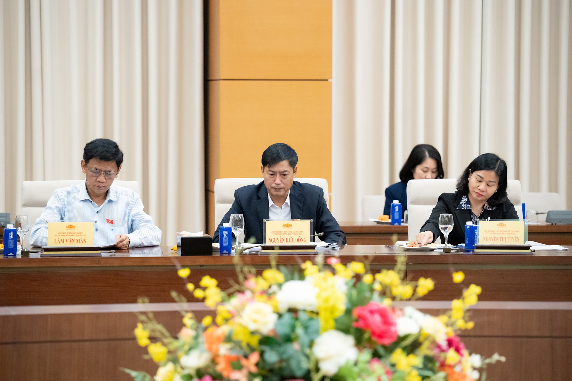 Hội đồng Bầu cử quốc gia biểu quyết thông qua Nghị quyết về việc điều chỉnh phân công nhiệm vụ một số thành viên của Hội đồng. Ảnh: VPQH