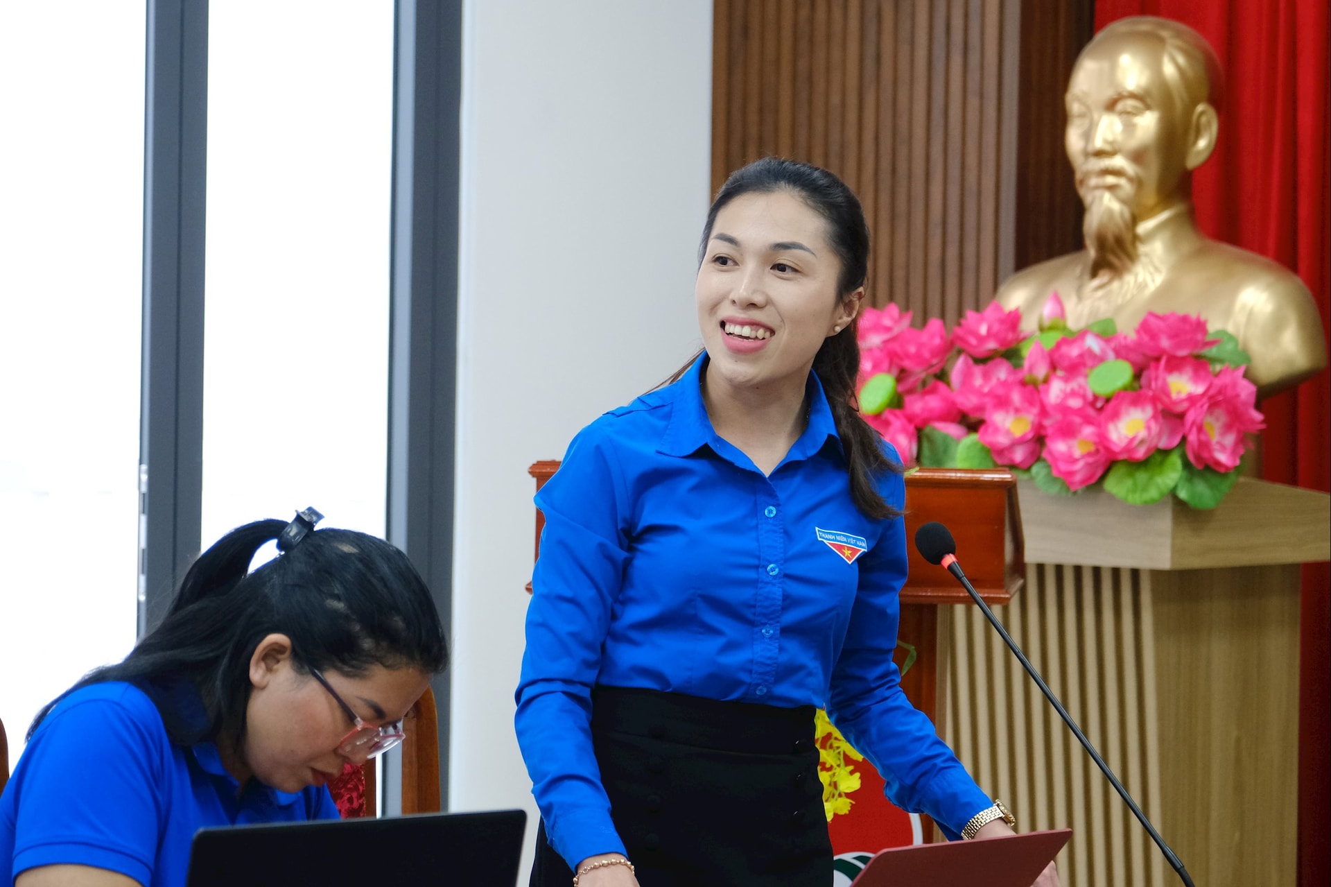 Phó Bí thư Thường trực Tỉnh đoàn, Trưởng Ban Công tác Đoàn và Thanh thiếu nhi, Ủy ban MTTQ Việt Nam tỉnh Lâm Đồng Trần Diệp Mỹ Dung phát biểu tại Hội nghị