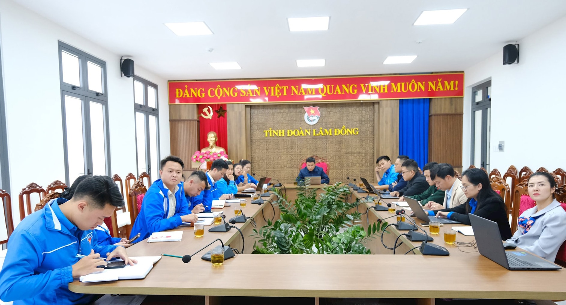 Quang cảnh Hội nghị điểm cầu chính tại trụ sở Tỉnh đoàn Lâm Đồng