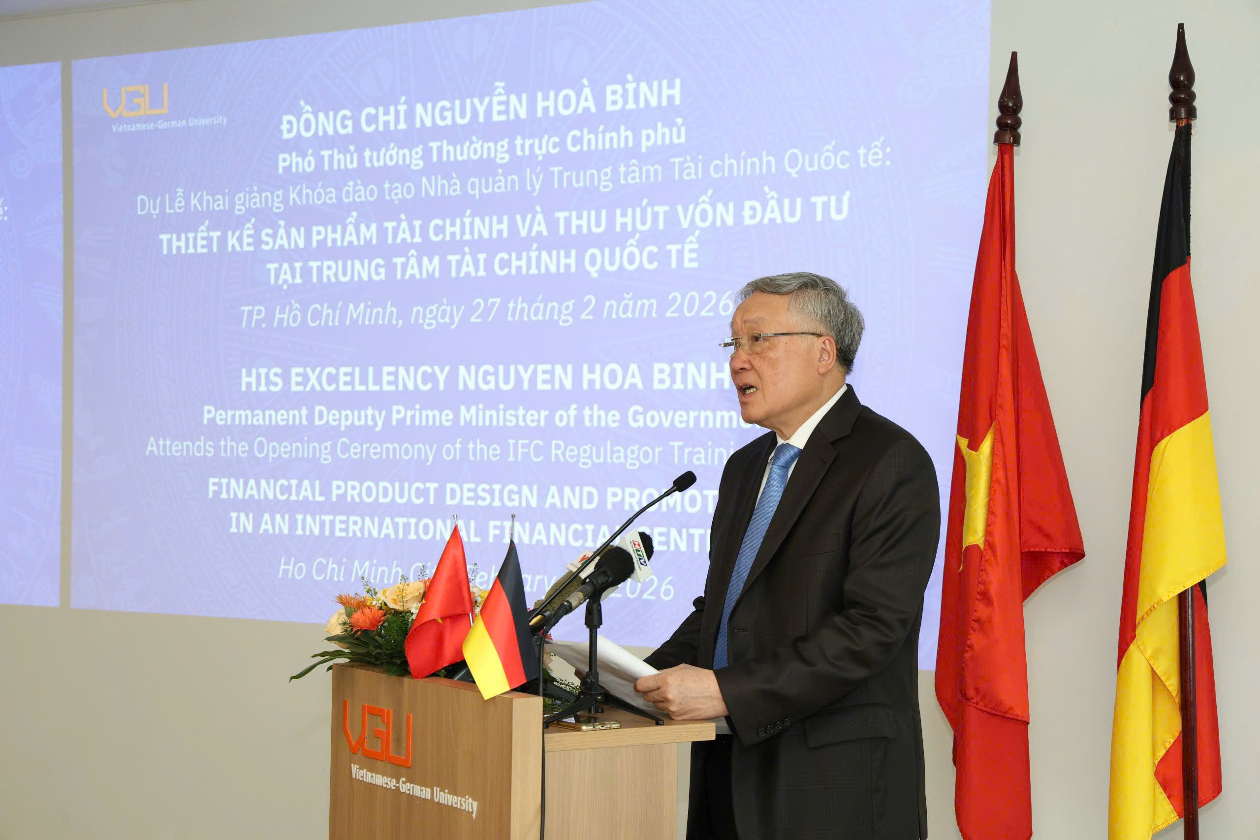 Xây dựng Trung tâm tài chính quốc tế phải đặt trên năm nền tảng cốt lõi gồm kết nối toàn cầu; khung pháp lý ổn định, minh bạch; nguồn nhân lực chất lượng cao, năng lực điều hành, quản trị và hệ sinh thái hỗ trợ phát triển. Trong đó, con người là yếu tố quyết định, bảo đảm toàn bộ hệ thống vận hành an toàn, hiệu quả. Đây là nhấn mạnh của Phó Thủ tướng Thường trực Chính phủ Nguyễn Hòa Bình, Chủ tịch Điều hành Trung tâm tài chính quốc tế Việt Nam, tại buổi khai giảng khóa đào tạo Nhà quản lý Trung tâm tài chính quốc tế (IFCR03) diễn ra ngày 27-2 tại TPHCM.
