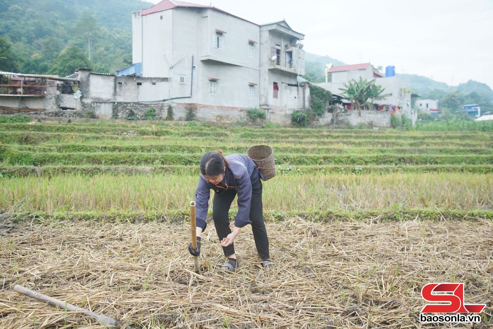 Bà Hoàng Thị Ương, bản Lềm, xã Phù Yên, thông tin: Gia đình tôi có hơn 3.000 m² ruộng trồng lúa 2 vụ và trồng 1 vụ đông hằng năm. Do ảnh hưởng của đợt mưa lũ hồi tháng 9 vừa qua, diện tích lúa bị thiệt hại khoảng 1.000 m². Ngoài ra, bờ ruộng cũng bị nước lũ làm hỏng 1 phần. Do đó, sau khi hoàn thành thu hoạch lúa vụ mùa, gia đình đã gia cố lại bờ ruộng và tạo độ ẩm vừa đủ cho đất trước khi xuống giống trồng cây vụ đông. Năm nay, tôi chủ yếu trồng các loại rau, đậu và một phần diện tích trồng cây ngô sinh khối làm thức ăn cho đàn vật nuôi của gia đình.