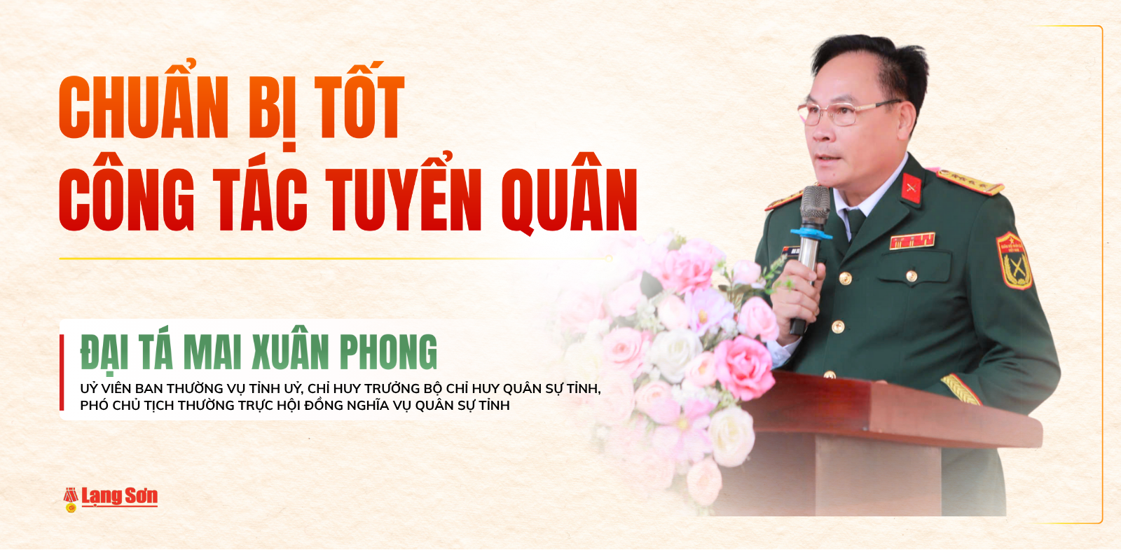 Phóng viên Báo và Đài Phát thanh truyền hình Lạng Sơn đã có cuộc trao đổi với Đại tá Mai Xuân Phong, Ủy viên Ban Thường vụ Tỉnh ủy, Chỉ huy trưởng Bộ Chỉ huy Quân sự tỉnh, Phó Chủ tịch Thường trực Hội đồng nghĩa vụ quân sự tỉnh về vấn đề này.