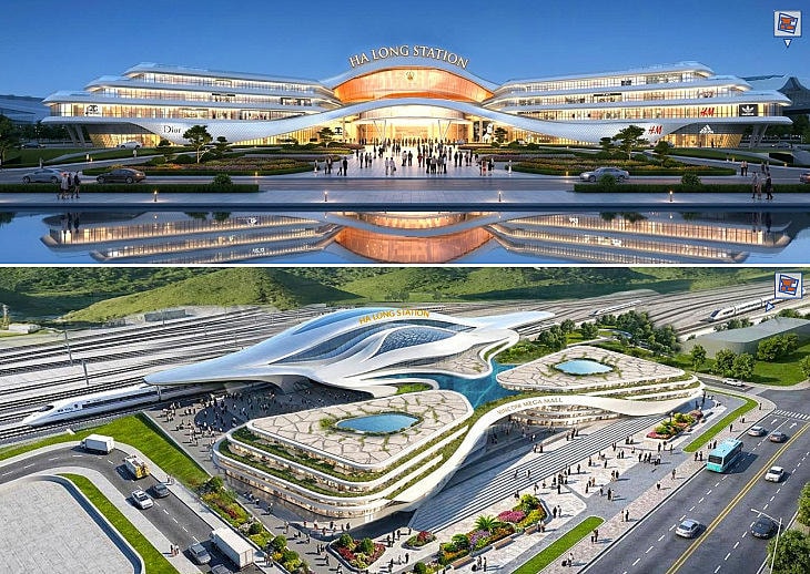 Phối cảnh phương án kiến trúc của công trình Nhà ga Hạ Long Xanh - điểm cuối của dự án tuyến đường sắt tốc độ cao Hà Nội - Quảng Ninh