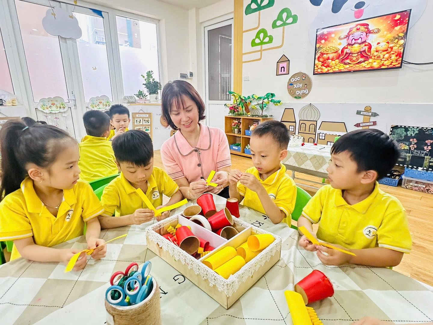 Cô và trò Trường Mầm non Sao Mai - Định Công trong giờ học. Ảnh ND