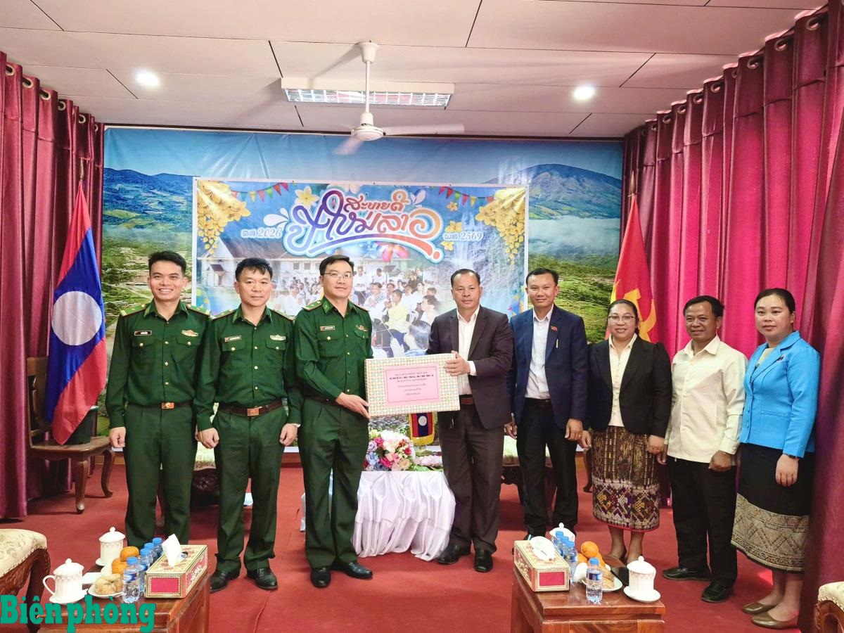 Nhân dịp Tết cổ truyền Bunpimay của nhân dân các bộ tộc Lào, Đồn Biên phòng Môn Sơn, Ban Chỉ huy Bộ đội Biên phòng tỉnh Nghệ An đã tổ chức đoàn công tác sang thăm, chúc Tết các lực lượng vũ trang và chính quyền huyện Xay Chăm Phon, tỉnh Bô Ly Khăm Xay. Hoạt động góp phần vun đắp mối quan hệ đoàn kết đặc biệt, gắn bó keo sơn hai bên biên giới. Lãnh đạo các đơn vị lực lượng vũ trang và chính quyền huyện Xay Chăm Phon bày tỏ xúc động trước tình cảm chân thành của cán bộ, chiến sĩ Đồn Biên phòng Môn Sơn; đồng thời khẳng định sẽ tiếp tục tăng cường công tác phối hợp trong quản lý, bảo vệ biên giới, giữ vững an ninh chính trị, trật tự an toàn xã hội khu vực biên giới Việt Nam - Lào. Ảnh: Lê Thạch