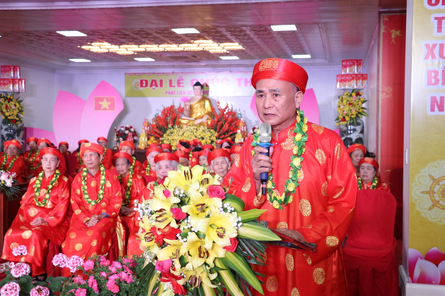 Đại diện phật tử được chúc thọ phát biểu tại Đại lễ chúc thọ