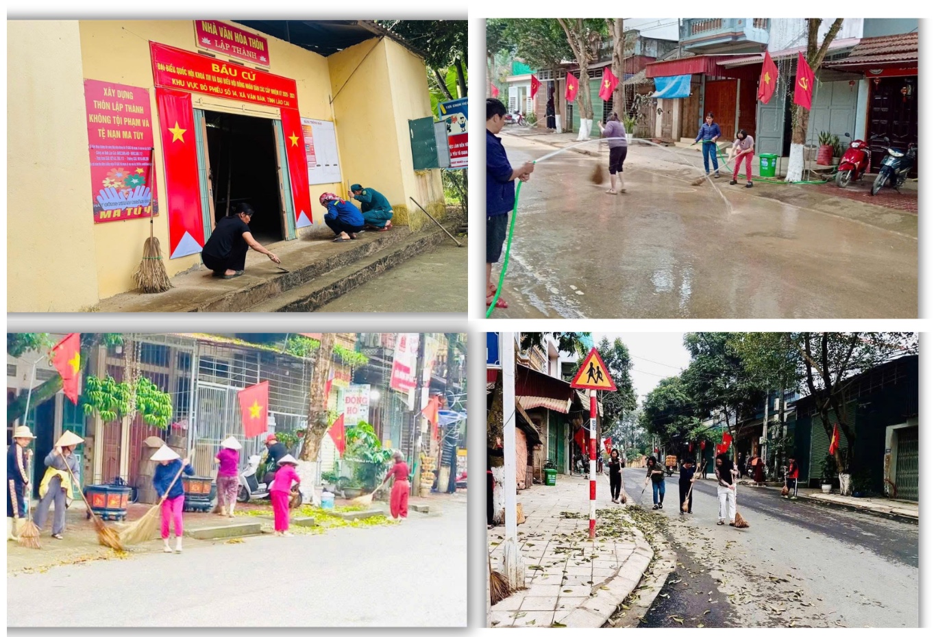 Chào mừng ngày bầu cử, các thôn đồng loạt tổng vệ sinh, làm sạch đường làng, ngõ xóm