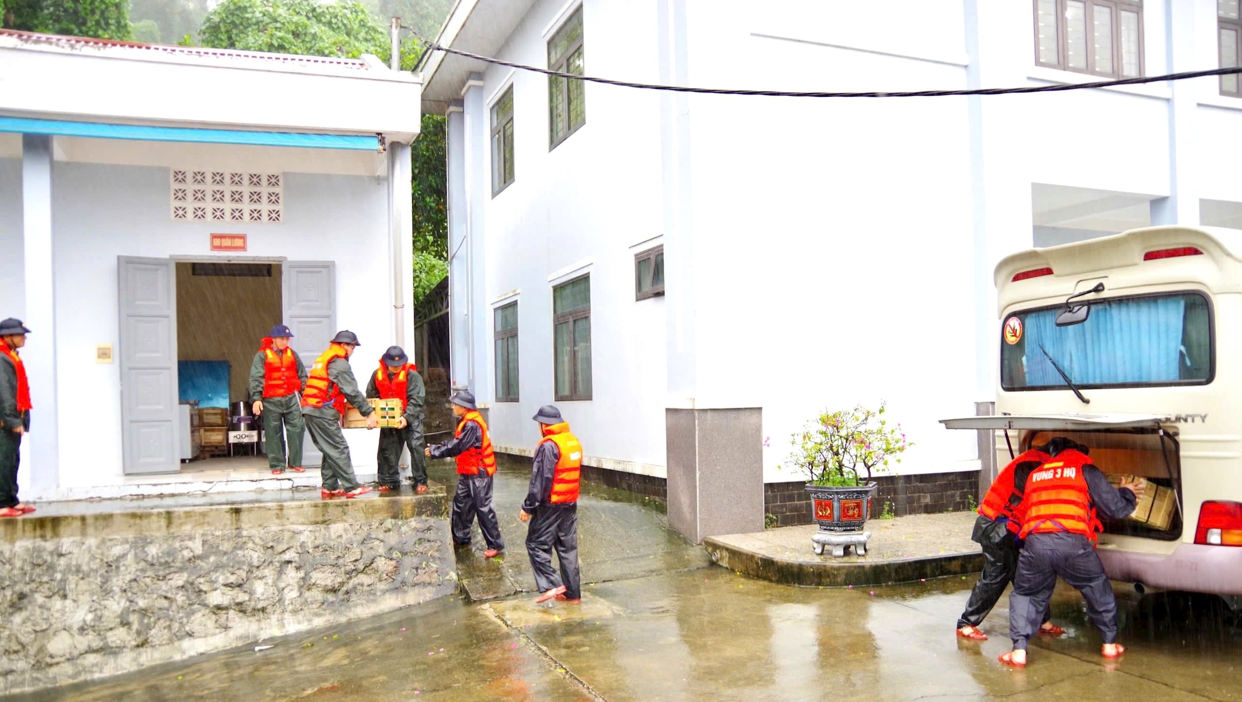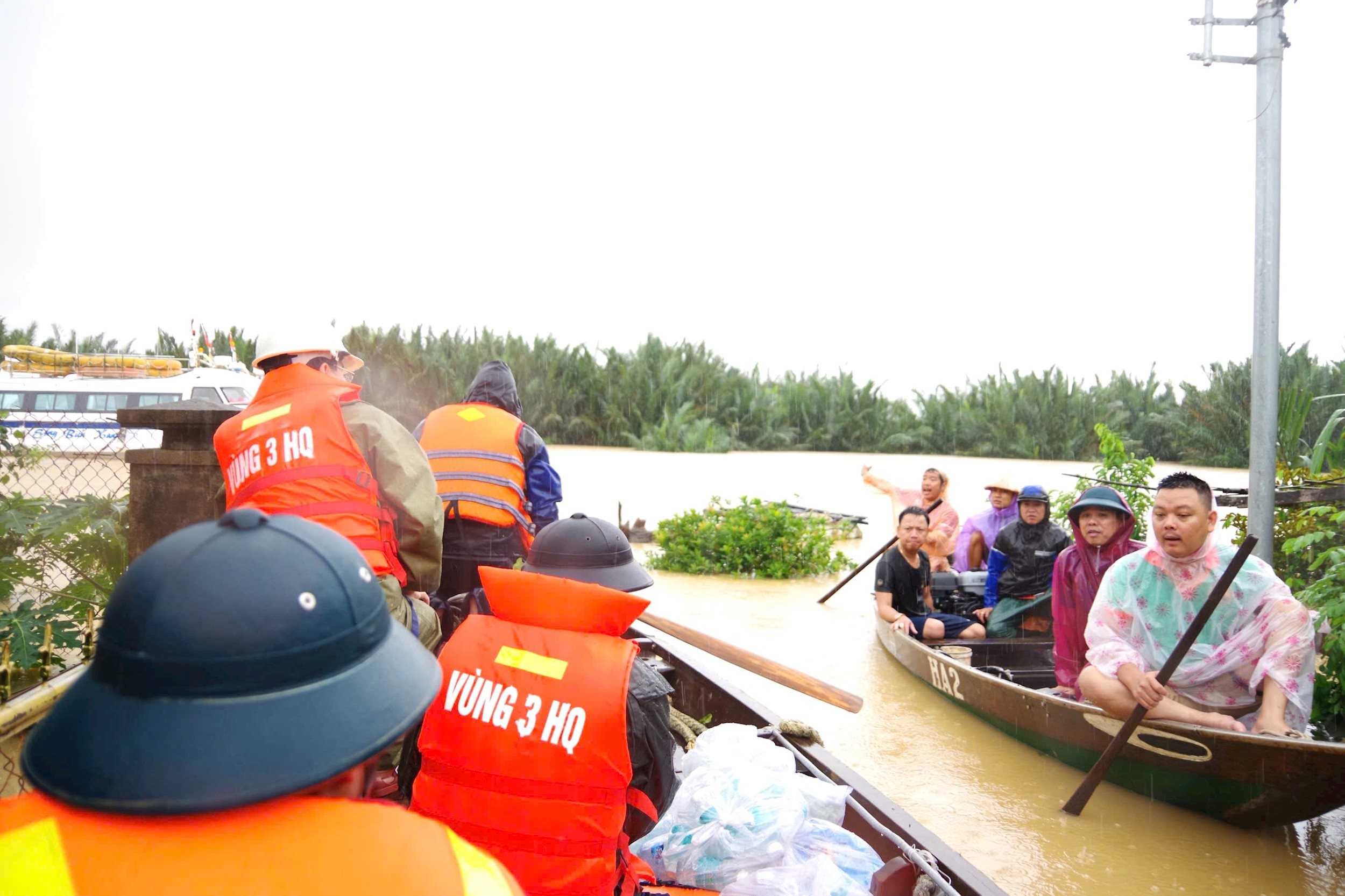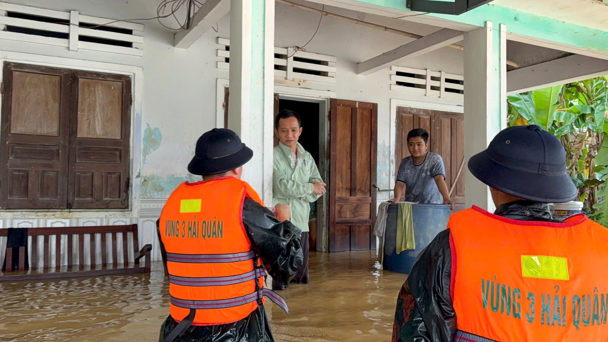 Ngày 29/10, ngay sau khi có mặt tại các khu vực bị ảnh hưởng bởi mưa lũ, cán bộ, chiến sĩ Vùng 3 Hải quân đã nhanh chóng phối hợp với các lực lượng chức năng trên địa bàn tổ chức phân loại, đóng gói nhu yếu phẩm gồm mì tôm, bánh mì, lương khô, nước uống… để vận chuyển và trao tận tay cho các hộ dân đang bị cô lập trong vùng ngập sâu.